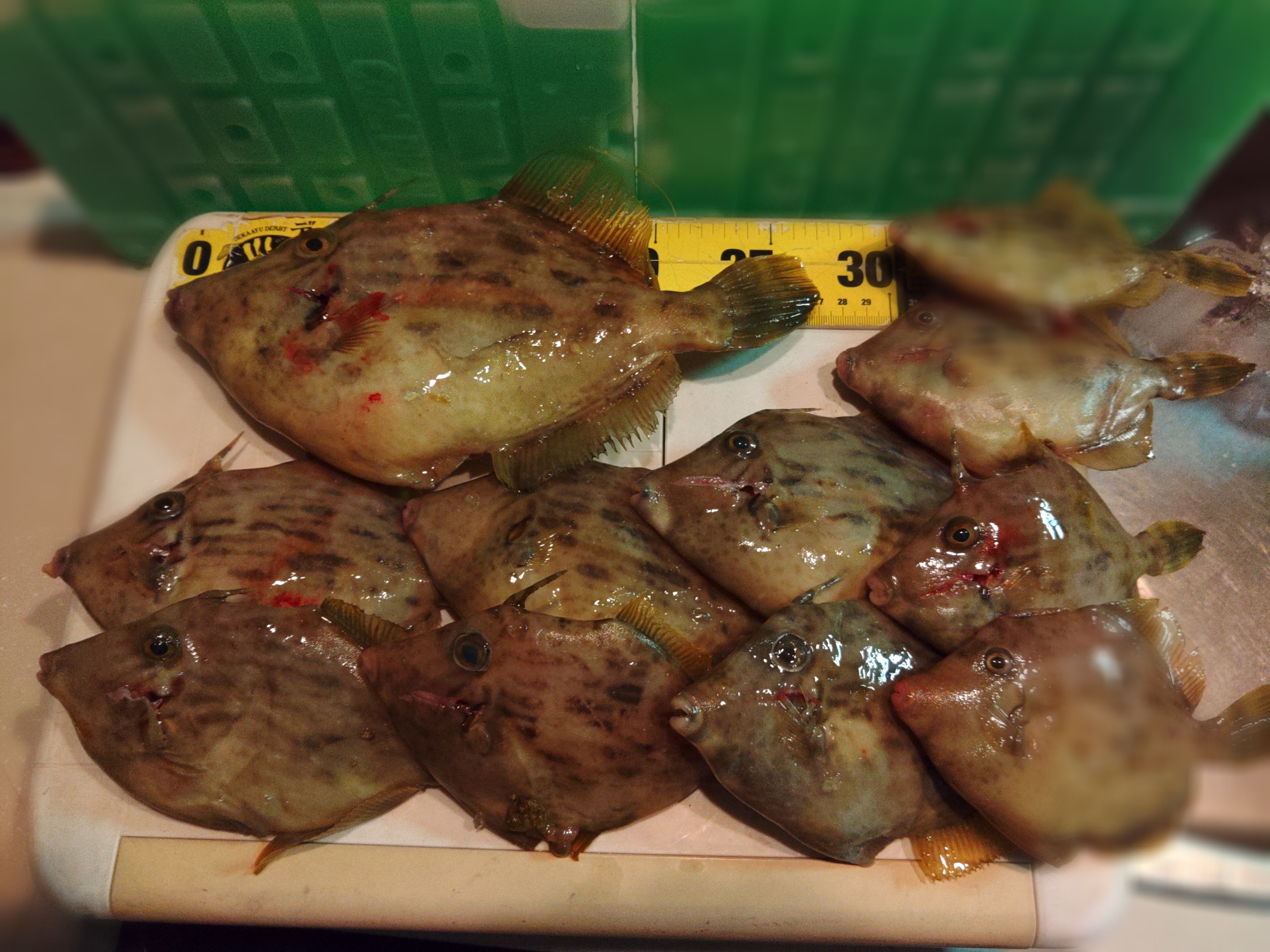 この日は小型が多かったが、30㎝超えの尺カワハギは船中2匹で、多い人は40匹以上の釣果でした。 今後もまだまだ肝パンの尺カワハギは釣れるとの事なので少し遠いがまたリベンジに行きたいと思います。