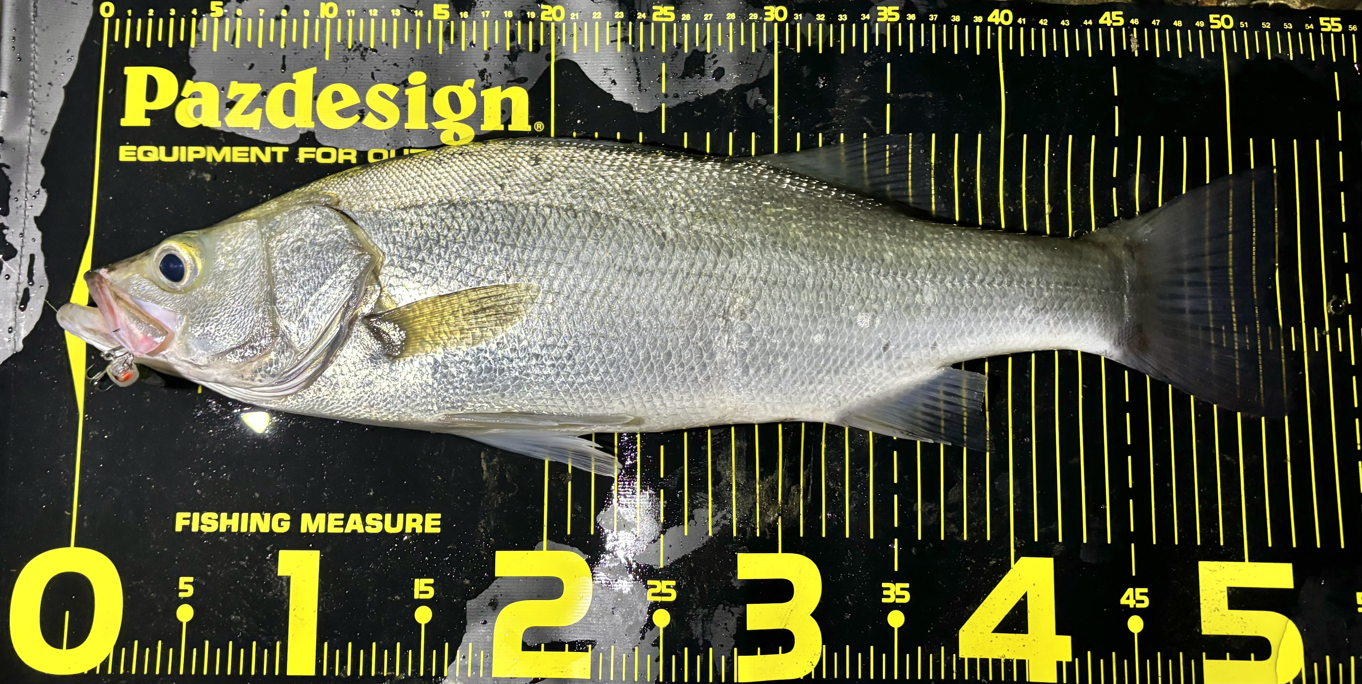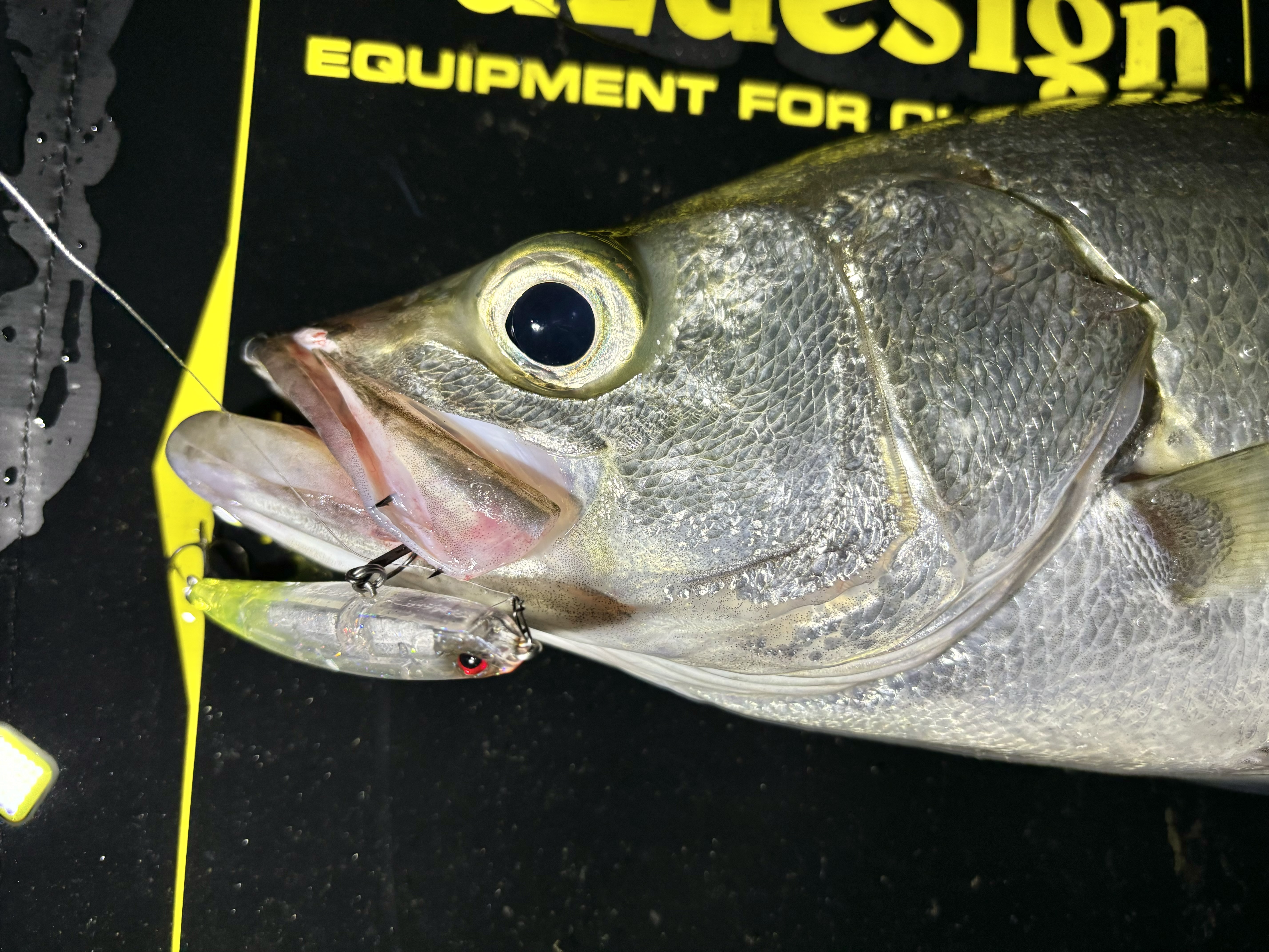3回目のジャンプでフックが一本外れた感覚があったので慎重にやり取りしてネットイン。52.5センチの綺麗なヒラスズキでした。途中坊主もよぎりましたが良い魚で鱗付け完了!