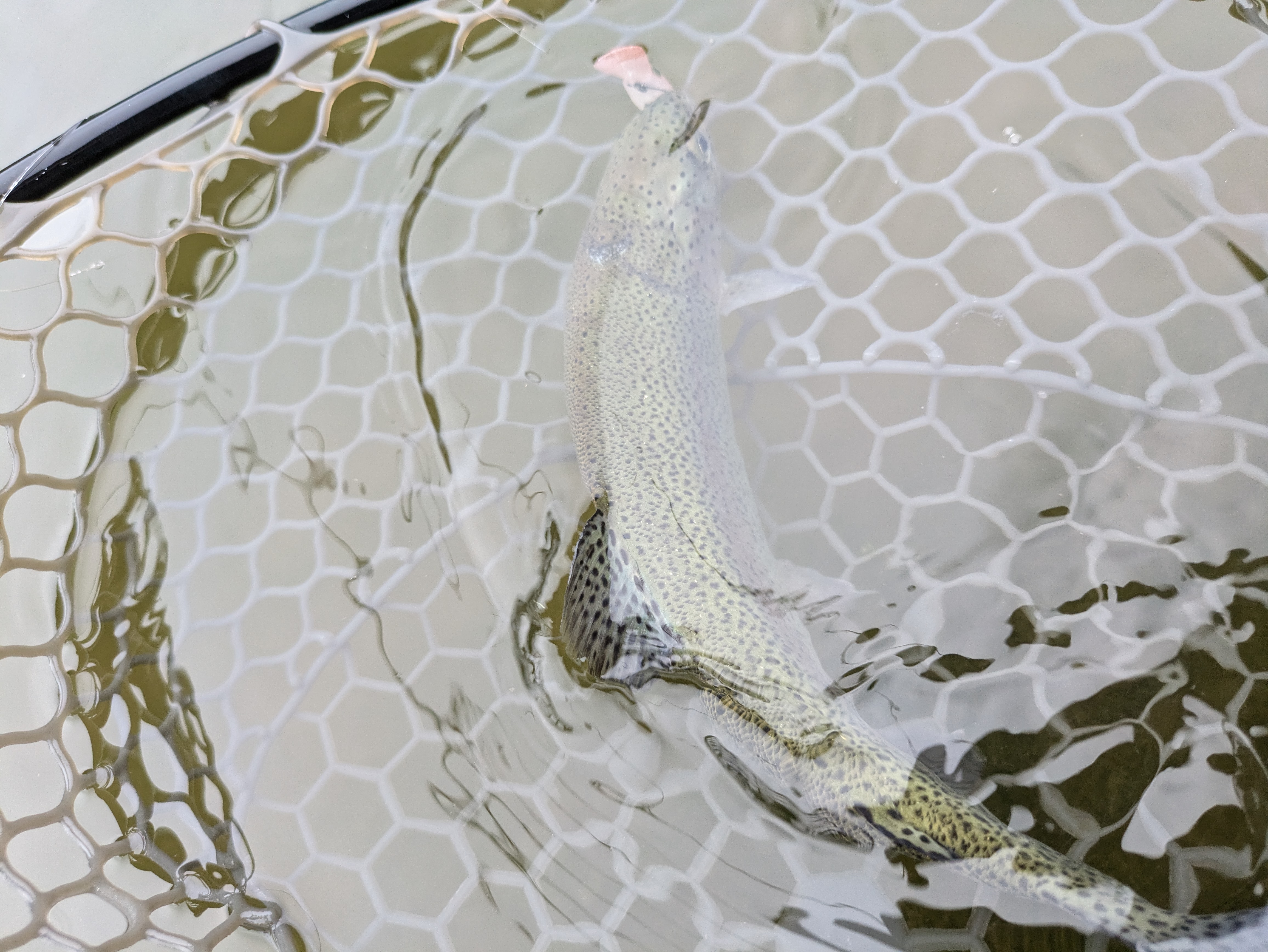 午後の部は午前の放流より取れたので良かったですが、急にさむくなって魚の着き場を見つけきれずにトータル35匹くらいで終了でした。
