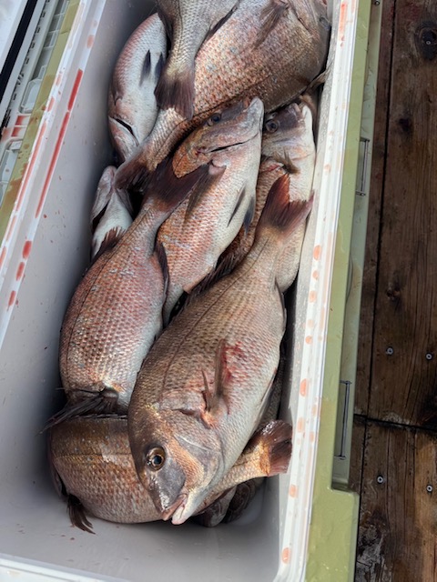 朝一は脈釣りからスタートして一投目で底まで落としてアタリが有りますが乗らずそのまま二投目底から少し浮かして浮かして少し誘うとモーニングで真鯛をキャッチ出来ました。