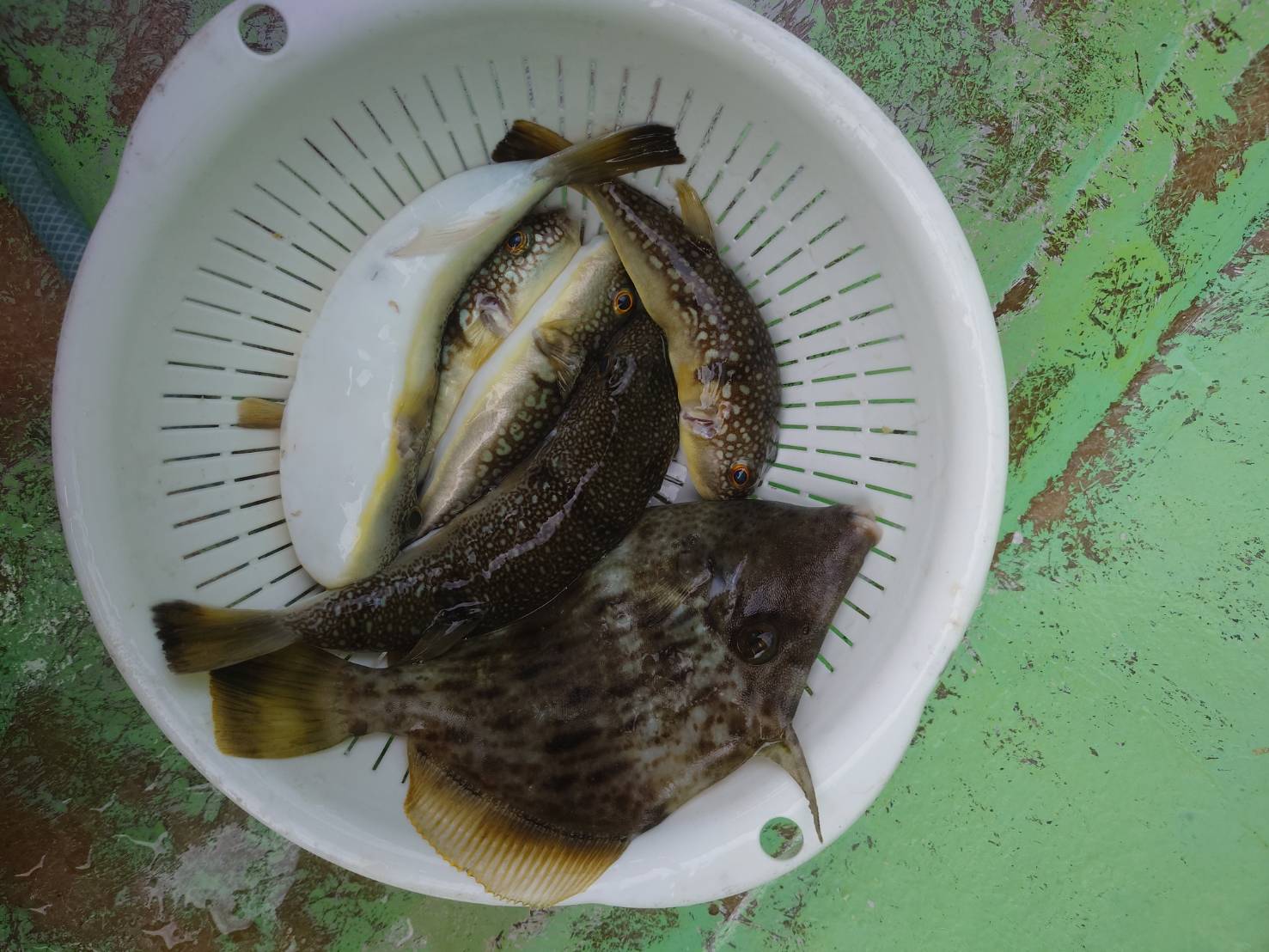 片名漁港出船のおざき丸さんにてカットウ釣りにてフグとカワハギを狙いに行ってきました、本日は前日からの急激な気温低下の為か、少し渋い一日でした、ヤマワのカットウ仕掛けWアームをメインで使用して、エサはホヤとアオヤギを付けました、朝一はカットウにて良型のカワハギが掛かり幸先良かったのですが、その後は本命のフグは苦戦して最終的に5匹のフグを釣り上げる事が出来ました、ベテランの乗船者の方の中にはフグとカワハギをパレットいっぱい釣っている方もおられたので、また挑戦したいと思います。