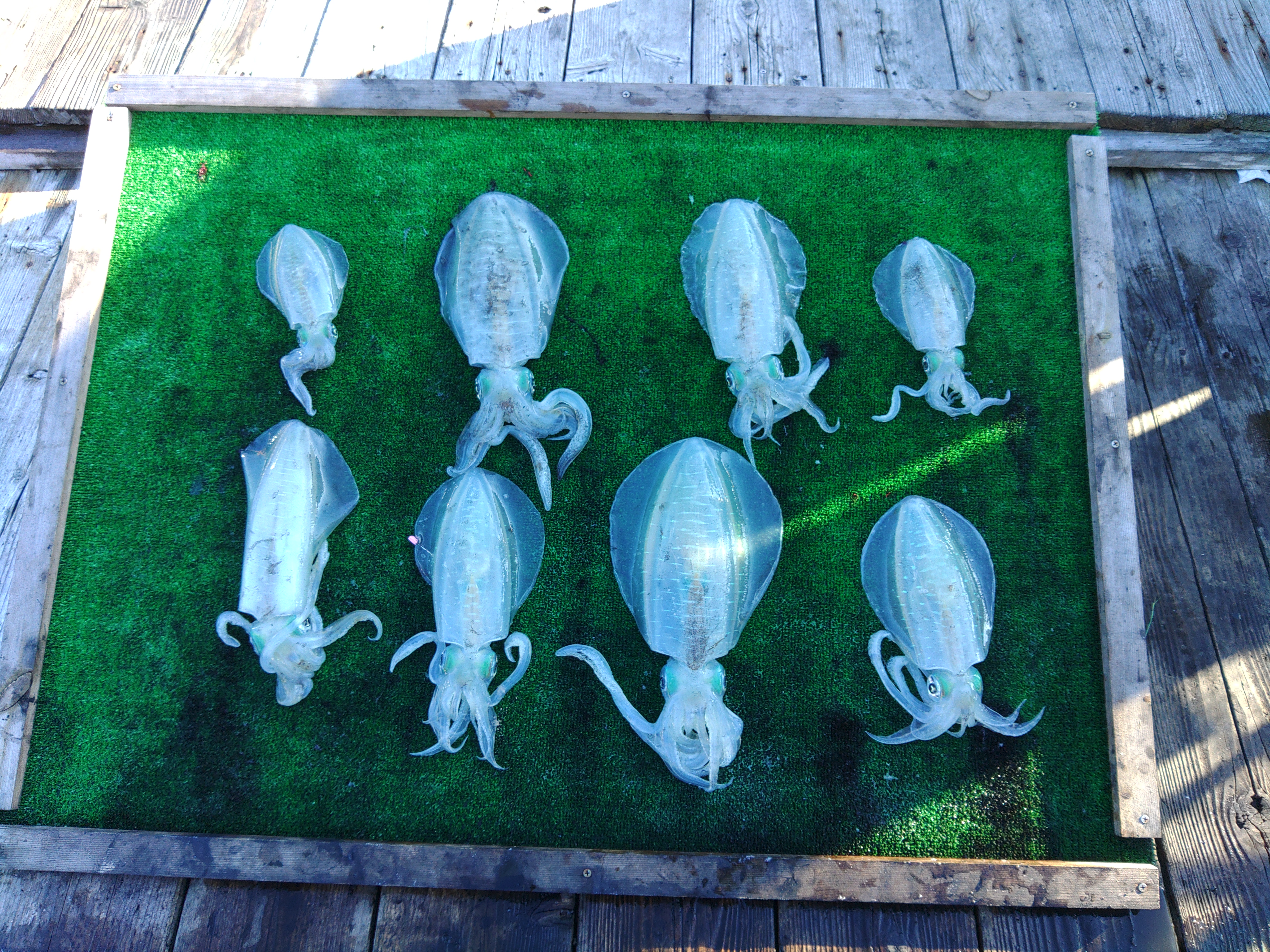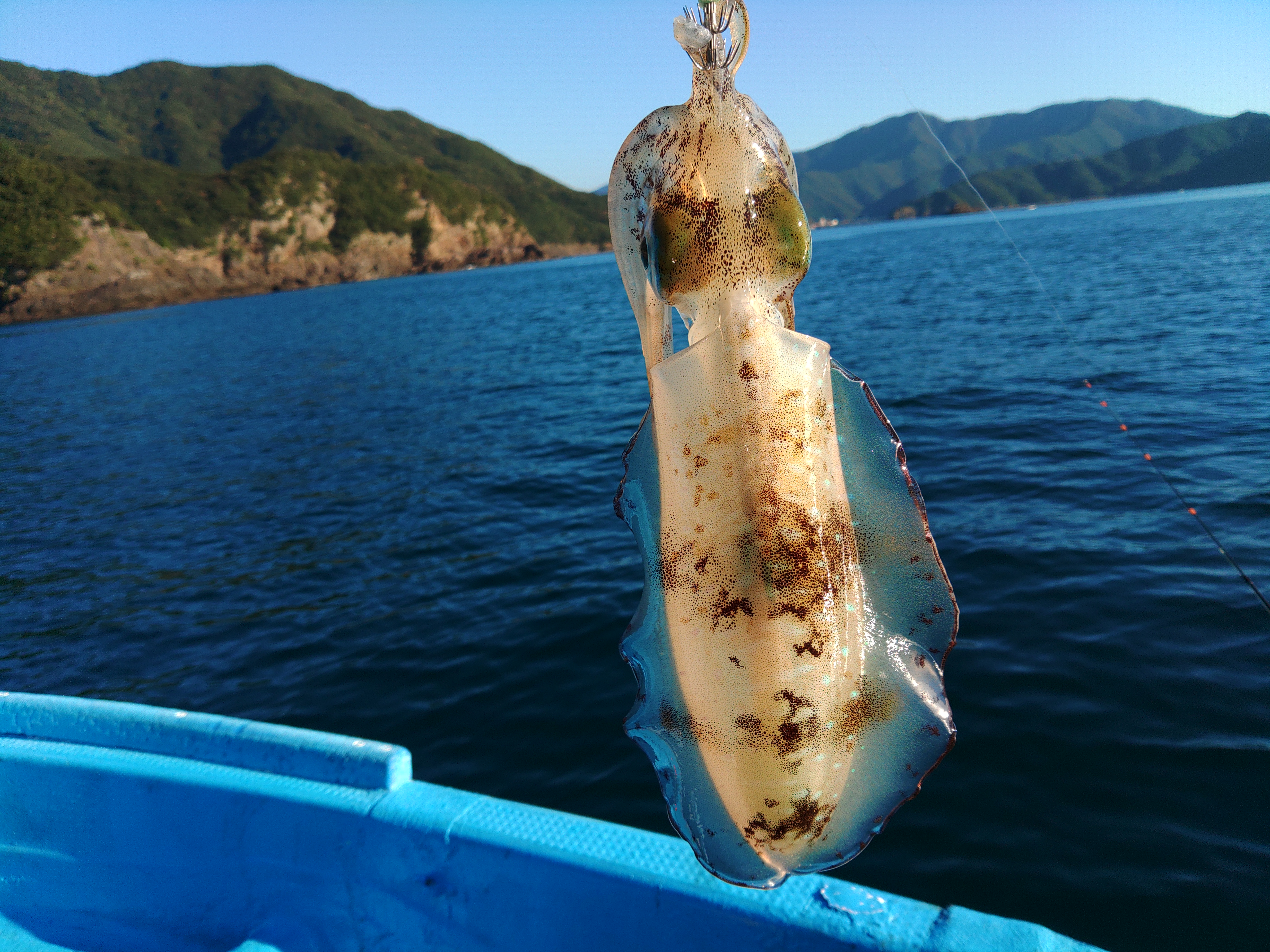 シーランドさんに戻り他の人の釣果を聞くと、水深20mぐらいの深場でティップランをしたグループが1㎏以上のアオリイカを5~6杯と500~600gを9杯で、深場で爆釣していました。 次回は深場でキロオーバーを狙います。