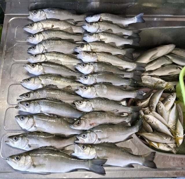 二晩目の入りはアジから狙いますがやはり群れが小さく足で稼ぎますがイマイチなのでセイゴ狙いで移動してみます。ポイントに入り投げるのですが反応が出ず探り歩くと居ました!ソコからはポツポツ釣れてくれて深追いせずに13匹釣ってアジ探しに戻ります。違う場所を見に行くのですがゴミが多く釣りにくくアジが釣れてもマメサイズばかりで数は釣れる状況ですが場所を移動しても状況は変らず後半でマメ中心に50匹ほど釣り二晩でアジは100匹ちょっとでした。セイゴに逃げて何とかなりましたがエリアを替えないとアジは厳しい感じになって来ました。