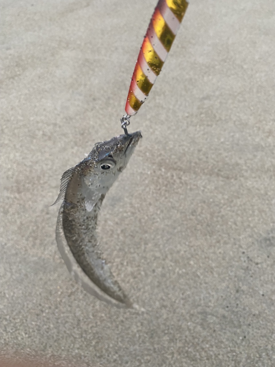 好調の遠州サーフに久しぶりに行ってきました♪先週当店山口や内藤がヒラメやマゴチを釣っているので期待値も高く、さらに前日も青物が釣れているので何とか時間をもらって午前中の朝マズメだけ限定でやってきました。ポイントに到着すると風はないのですが波が高く、ギリギリできるかどうかというところでしたが、すでに先行者のお客様も多く、いらっしゃり、とりあえず空いていたポイントに入りました。ログズ140Sやフリッパーを投げてみますが波も少し高めでミノーの動きが明らかに悪かったので、フリッパーやマキッパなどで試してみますがアタリは無し。一息ついているとお隣で銀ピカのタチウオが上がっているのを目撃して、水面を見ているとタチウオがボイルしていました♪やっぱり釣れる魚を狙いたいので今度はRサーディンの40gに変更してボトムを取ってから中層をフワフワさせていると予想通り喰ってきました♪サイズは指3本位まででしたが、この日はタチウオの回遊で、自分の入ったポイントは賑わっていました。自分もしっかり便乗して5,6本位釣ることが出来ました。予想とは違って、青物、フラットは不発でしたが色々な魚が回遊している今がチャンスです♪