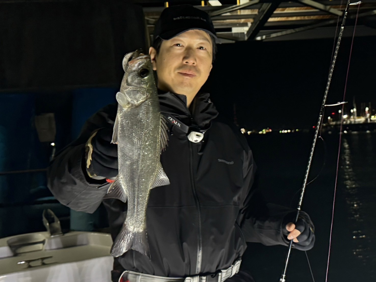 しばらくロックで遊んだ後はシーバスです。バースの際や明暗部分を狙うとガツンと手首を持っていかれそうなバイトが!私はセイゴクラス〜55位までのサイズとなりましたが強い引きで楽しめました!途中再度ロックフィッシュポイントで入れ食い祭を堪能して最後にシーバスをやり納竿。