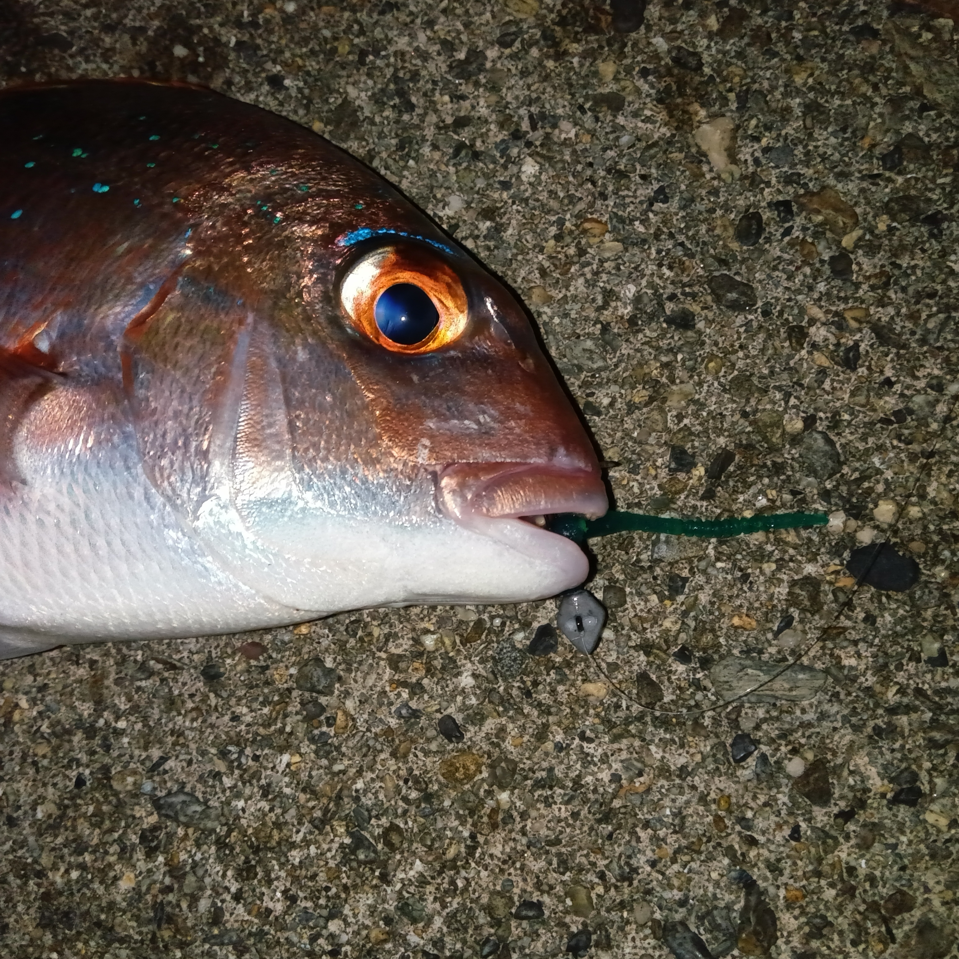 上がってきたのはまたマダイ、ですがまあまあサイズの26センチ。アジングタックルでやり合ったので楽しかった♪
