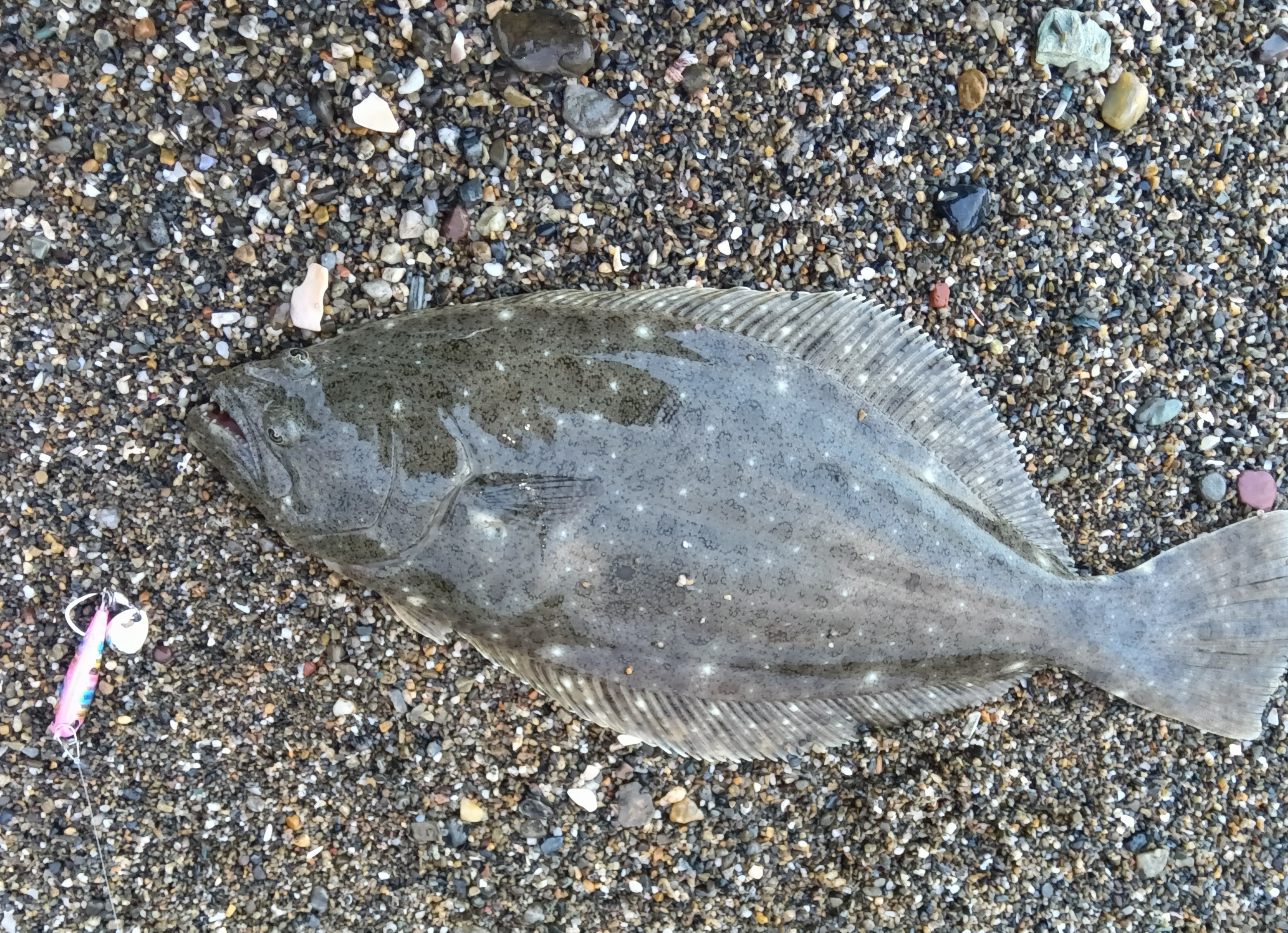 満潮から下げ30分後の16時過ぎにサーフを5メートル間隔で刻みながらコーモラン:メタルマジックショアを投げていくと…
