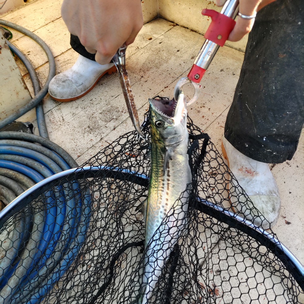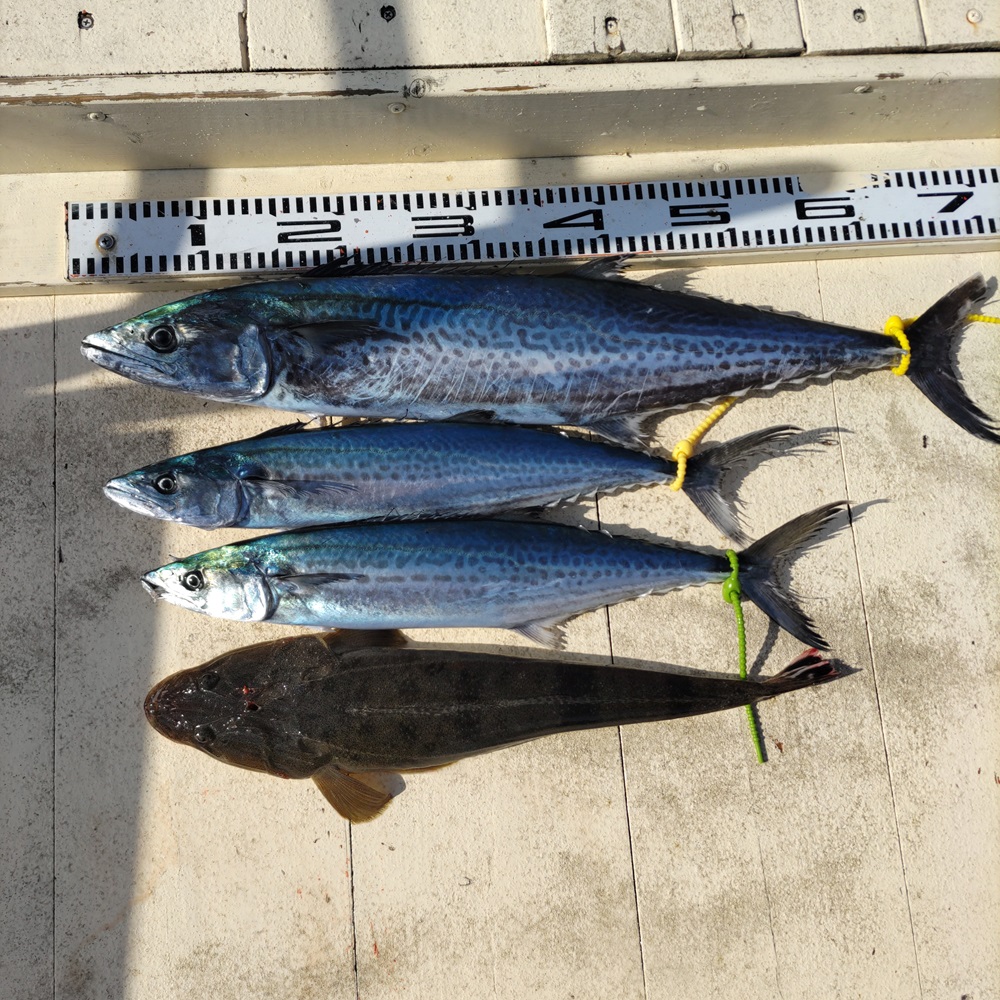 秋のサワラキャスティングはバラシの連続でサゴシすら釣れていない状況の私ですが諦めずにまたもやりき丸様でキャスティング釣行です。雨上がり後の爆風となりましたが海は釣れるような雰囲気もあり朝から集中します。二つ目のポイントに入ったところで同船者が2連続でサワラ&サゴシを釣り上げます。私もサゴシチューン28gを信じて投げ続けます。早巻き後にジャークを入れるとバイトがありサゴシをようやく釣り上げることができました。釣果はサゴシ1尾でしたが船上は楽しい雰囲気なので釣りを楽しんだ感が大きかったですよ。