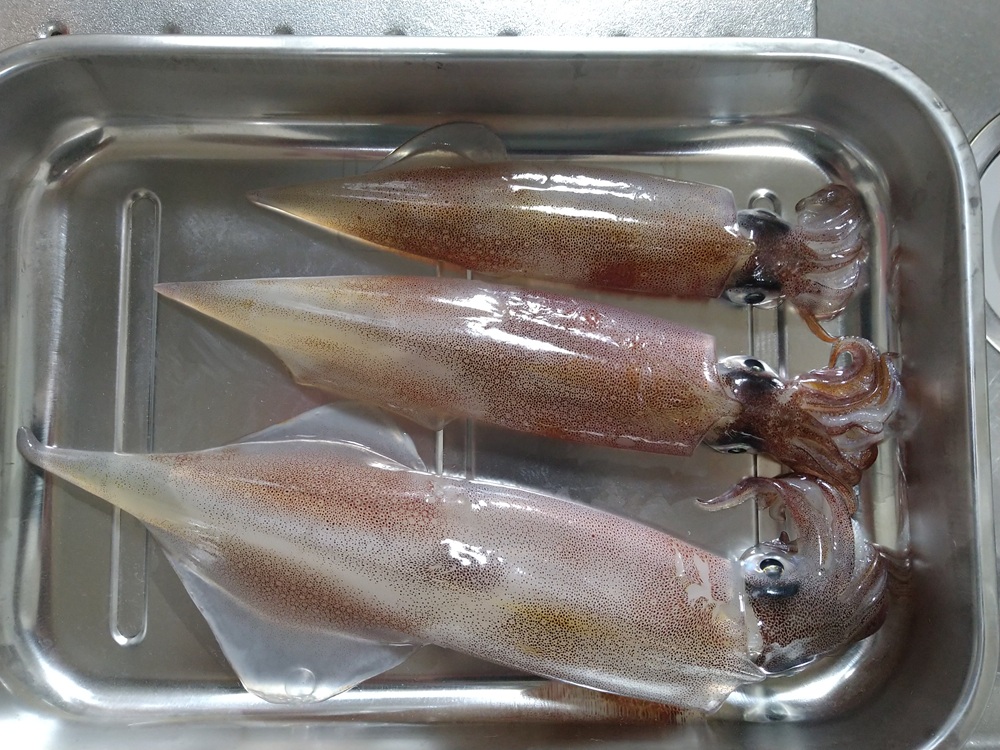 こんにちは~焼津街道店の三浦です。12月2日に用宗港の興津丸さんで石花海ヤリイカ釣りに行ってきました。当日は波も風もなく絶好の釣り日和。朝5時30分に集合し出船。ポイントに到着し竿入れの時間まで待ち7時スタート。オモリは120号で水深は150~170M。ヤリイカは後半に釣れることが多いですが、朝から頑張って誘います。しばらくは沈黙の時間が続き、船中でポツポツ釣れだしますが、私はなかなか釣れず。開始から2時間で1杯のみ。その後も数を伸ばすことができず、12時の時点で1杯追加で2杯。ラスト1時間で1杯追加し最終で3杯。船中トップは12杯で私の4倍の釣果でした。船長も釣れるポイントを探して走り回ってくれましたが、私は釣果に繋げることができませんでした。おなかいっぱいヤリイカが食べたいのでまた行ってきます。