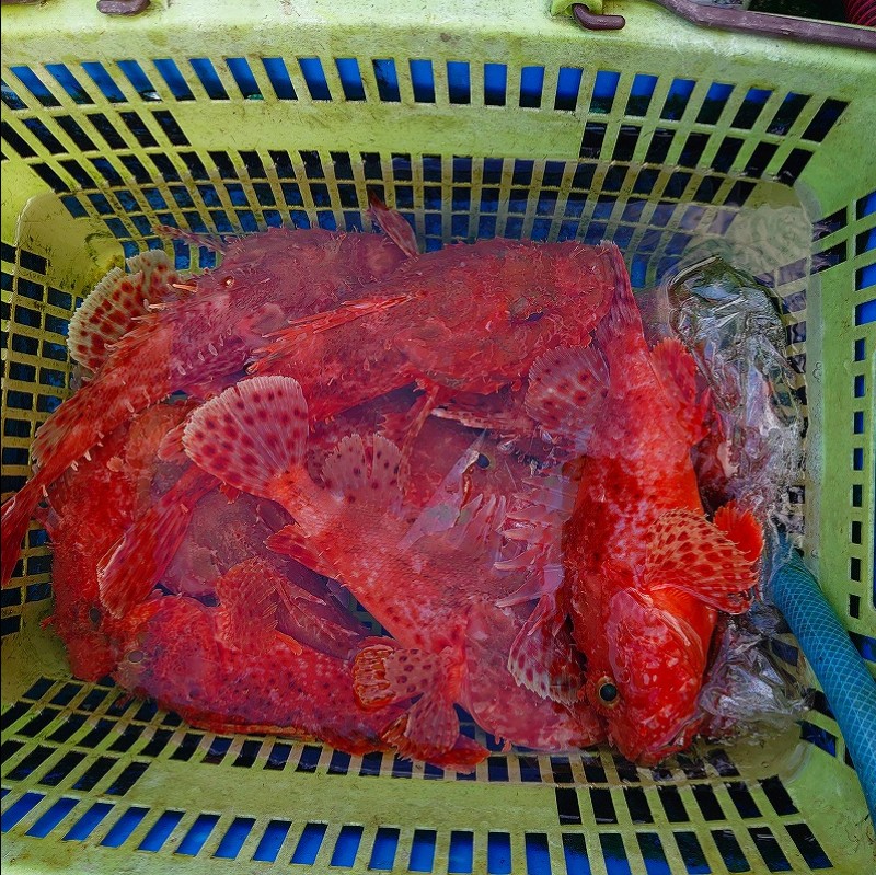 周りでは、アマダイやヒシ鯛なども上がりワイワイ楽しい釣行となりました。最終オニカサゴ9匹に、フカカサゴ1匹と私には本命の確立多く、非常にうれしかったです!