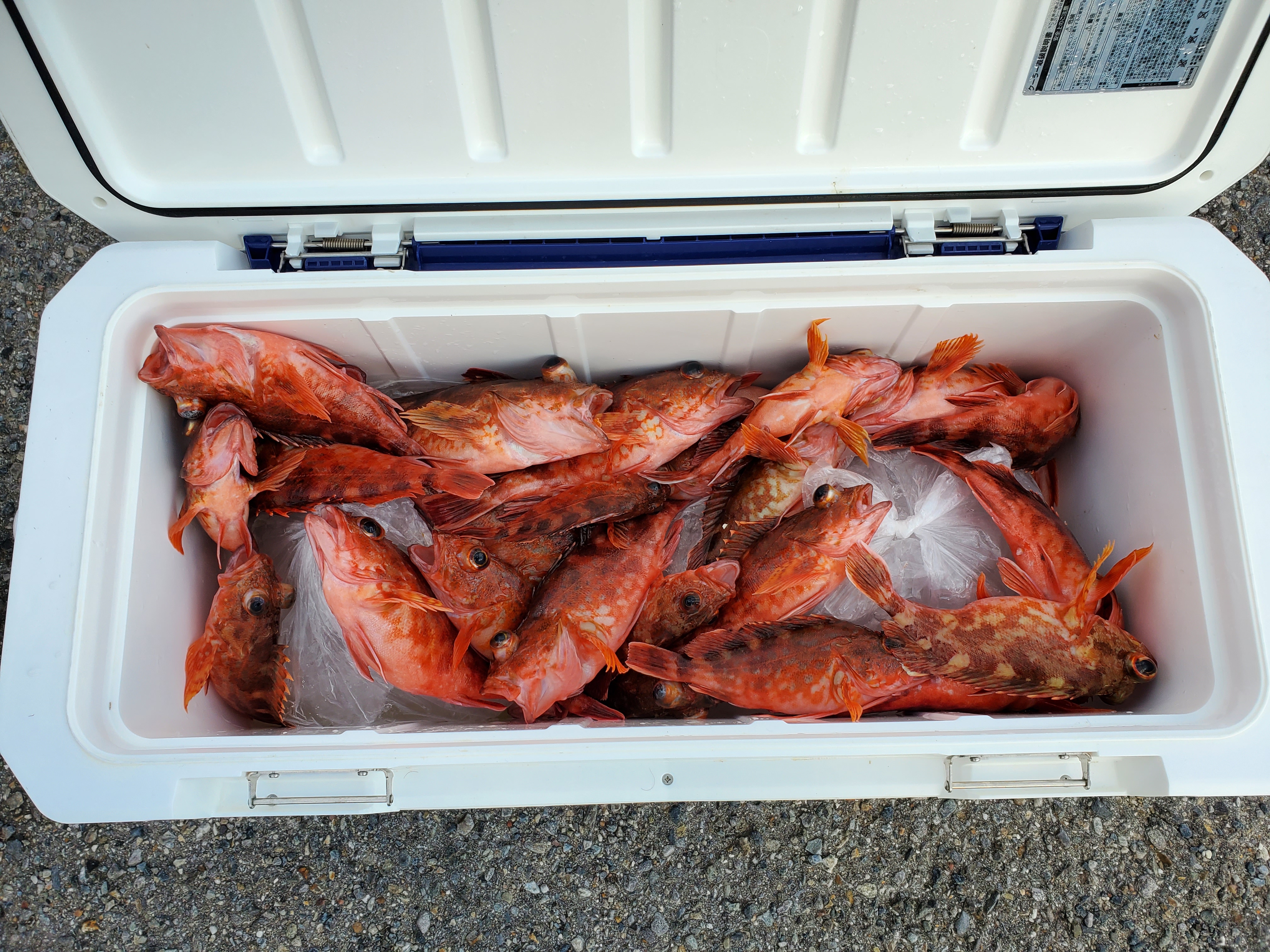 最近魚に愛されておらず、ボウズをくらいまくっているので、簡単に釣れるカサゴ釣りに当店の金子店長と、FLD東郷店の柴田店長3名で、すずえい丸様にお邪魔してきました。乗船して暫くすると、体調が…おかしい…。普段はあまり船酔いしないのですが、この日は寝不足でガッツリ船酔い…船室で一時間ほど仮眠をとると復活(笑)