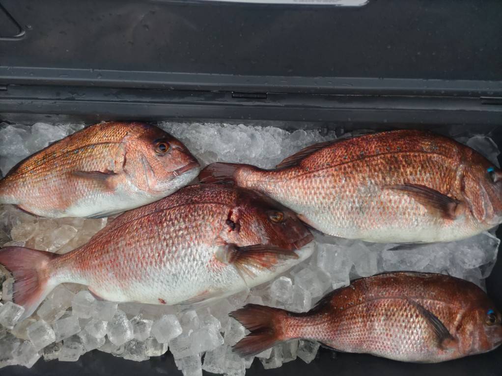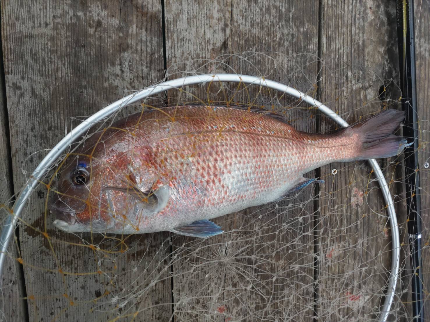 真鯛を釣ってみたいというスタッフさんと一緒に迫間浦の佐助屋さんに行って来ました!当日は4人での釣行です!午後からの6000円で4匹釣ることができるコースで釣り開始!真鯛と同時に青物も狙いたいのでギンペイ(ウグイ)も用意しました!真鯛狙い組と青物狙い組に分かれて釣り開始!真鯛狙い組のウキに反応はあるもののなかなか針掛かりしません。ギンペイの青物狙いのウキにも反応がありますが様子がおかしい…。アオリイカです。エサを付け替えて入れ直してもアオリイカに邪魔されて釣りになりません(^_^;)真鯛に狙いを変えますがこれがまた大苦戦…。結果4人で真鯛4枚という不本意な結果でしたので作戦を練ってリベンジしたいと思います!
