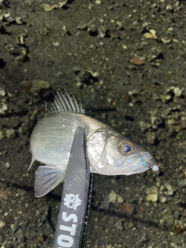とか思ってる1投目からヒット!めっちゃエラ洗い。まぁまぁの重量感で上がってきたのは尺ヒラセイゴ!やりとりは楽しい!ですがやっぱりアジが釣りたいので投げる向きレンジなど色々変えますが喰うのはヒラセイゴばかり。