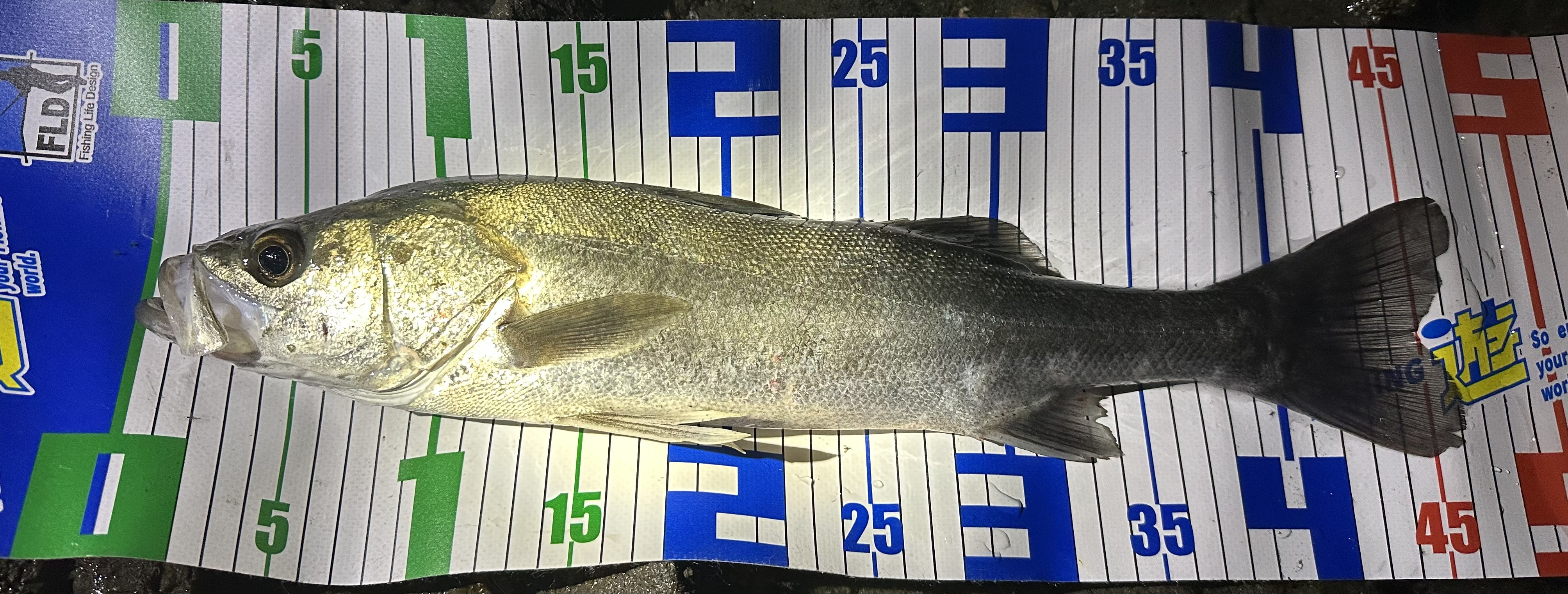 その後も同じように流しているとバイト!明らかに引きが違うと思いながら、上げてくるとシーバスでした!