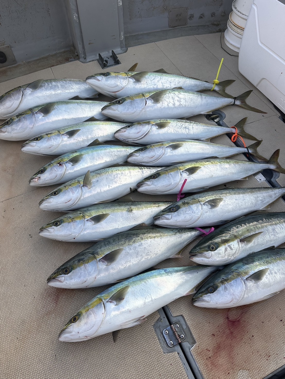 その後も流す度に、誰かしらにバイトが出て、気がつけば、船中40バイト以上、24キャッチの満足の釣行となりました。