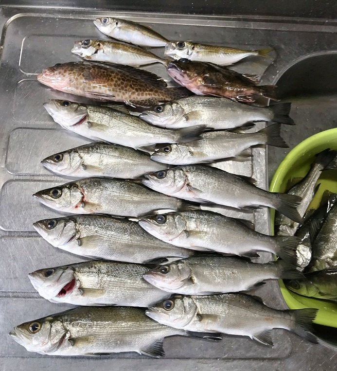 セイゴは12匹でアミパターンになっていたのと10㌢ほどレンジを下げたら反応がでまして何とか、アジが釣れた事で二晩目につながります。アジを狙っていてオオモンハタも釣れました。