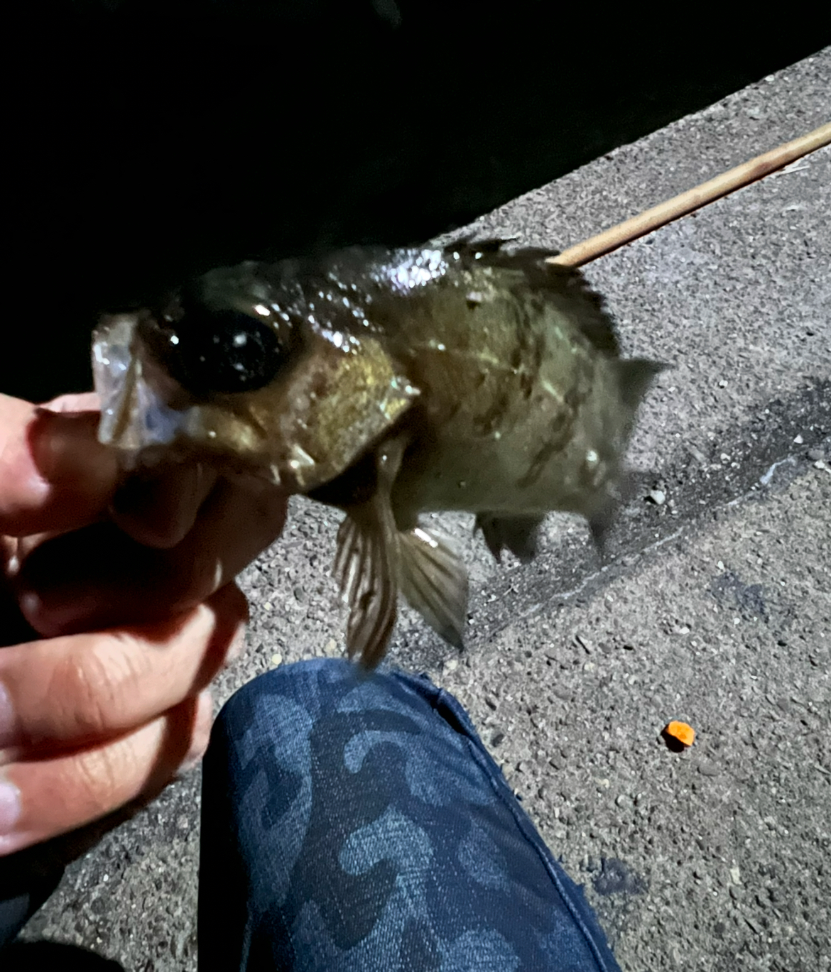 急にメバルが釣りたくなり南伊勢方面へ行ってきました。めぼしい場所を探し回り漁港でもなんでもない場所で灯りがある付近を狙っていくとコツコツバイト。乗らないのでリトリーブスピードを下げるとヒット!15センチあるかないかのサイズ!その後もショートバイトはあるもののなかなか乗らず2匹追加で終了!寒すぎて撤退!
