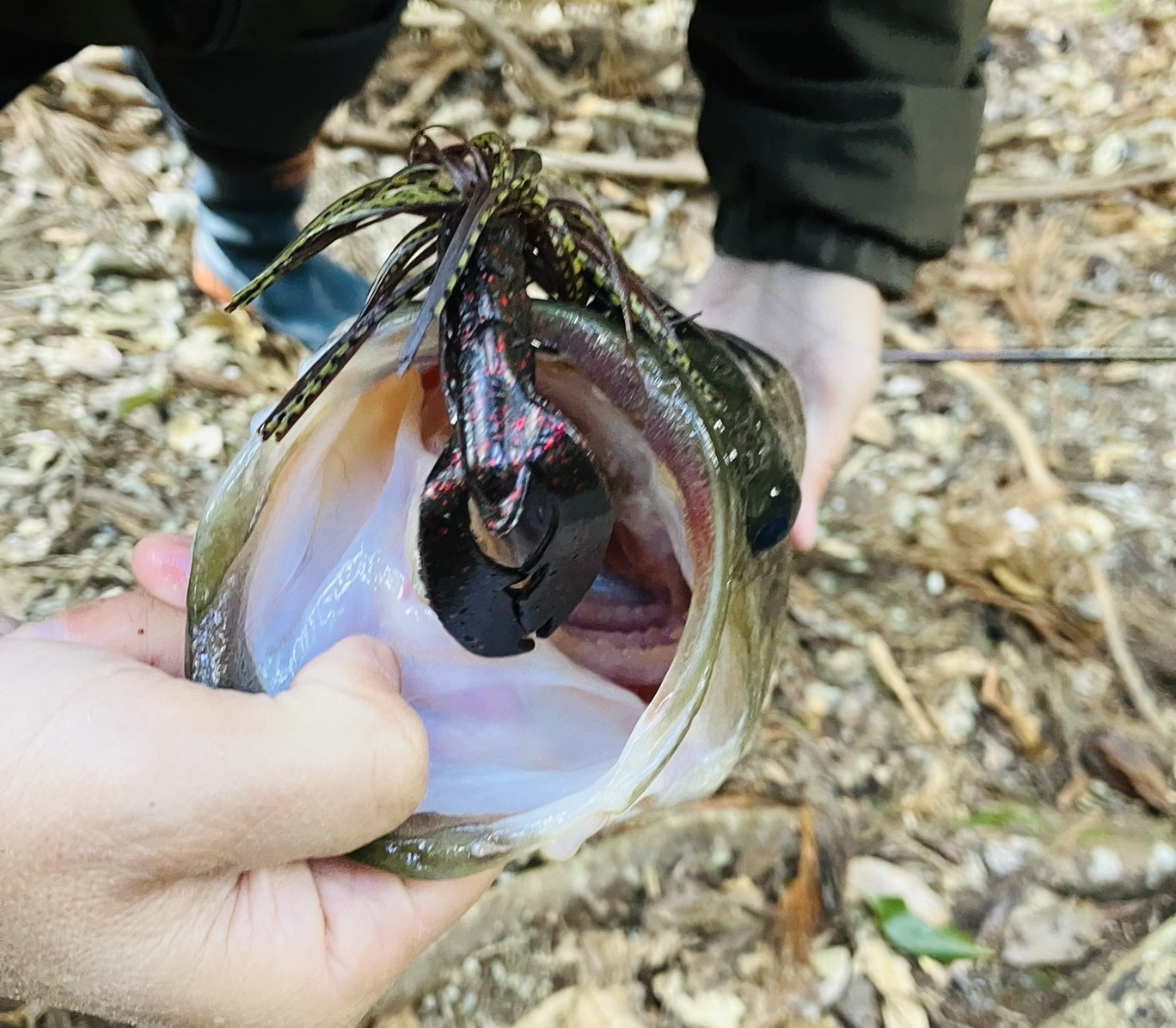 ラバージグで冬バスGET(^^)14時からの短時間釣行!ラバージグ1本勝負(。•̀ᴗ-)✧やる気あるバスを狙いシャロー狙い!ゆっくりと丁寧に狙います!ラバージグは、OSPゼロジグワン14g、トレーラーは、バークレイチガークロー4in(^^)対岸の水深の深いエリアにキャスト!丁寧に底をズルズル…。すると!?明確にコツっとアタリ(≧▽≦)フッキングも決まり上がってきたのは45cmのナイスサイズの冬バス(。•̀ᴗ-)✧貴重な1匹(☆▽☆)ラバージグのアタリはやみつきになりそうです(^^)