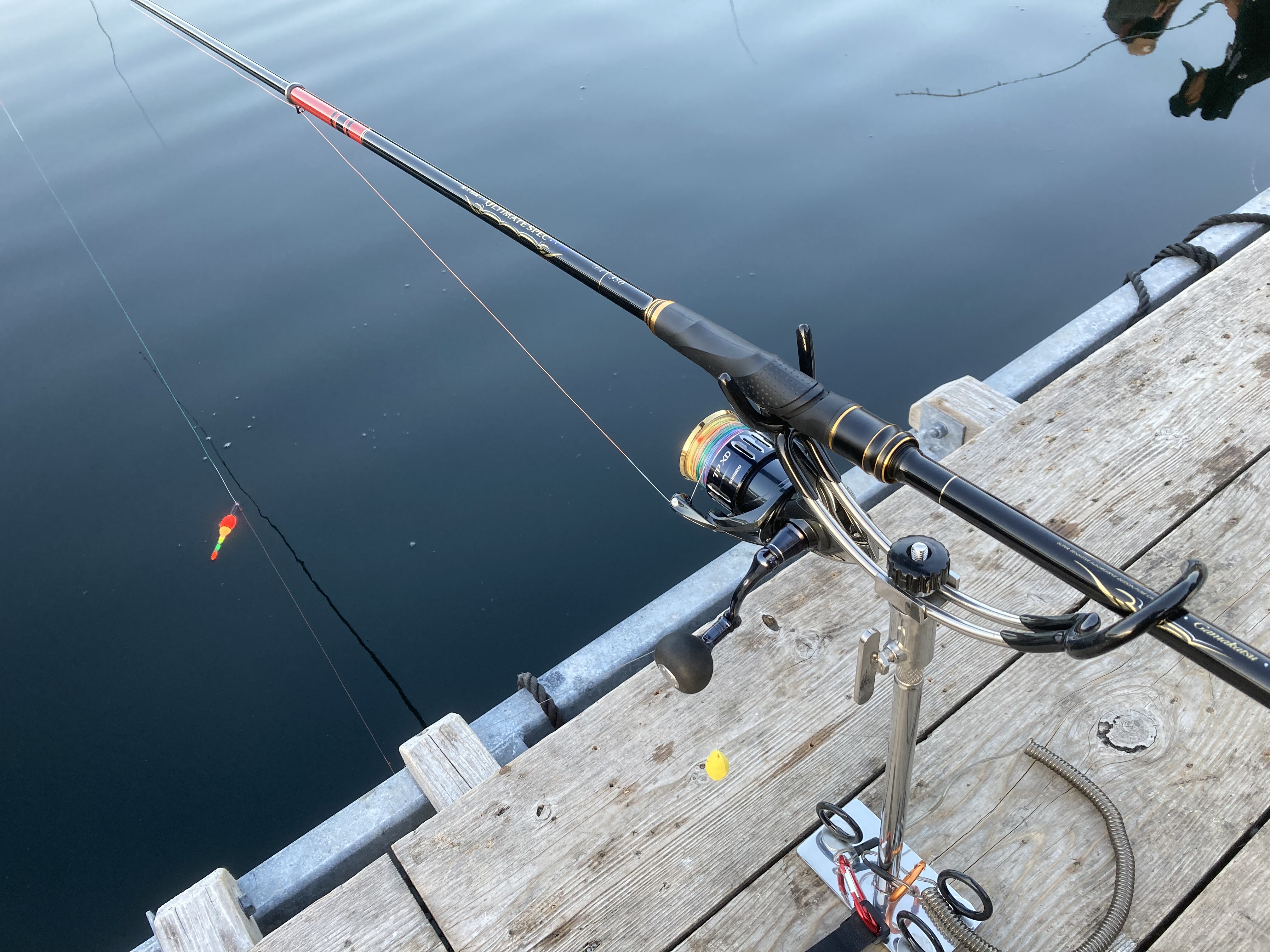 放流タイムも不発で終わり、なんとかマダイをもう一枚釣るべく、ミックとマダイイエローを練った団子を投入していると何やらウキが深く消し込んでいるではありませんか。