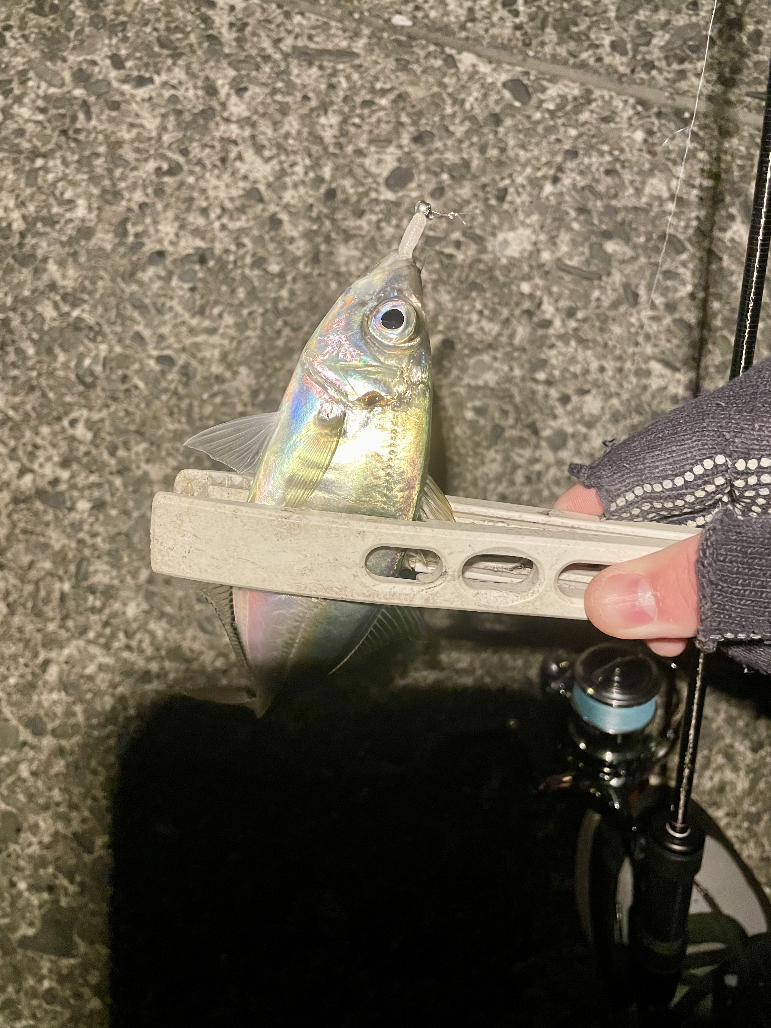 釣り方は着水から糸ふけを取り、早めのペースで巻きながらロッドでアクションをつけてあげるとツッというような小さい当たりがあるのでそれを掛けていく感じでした!