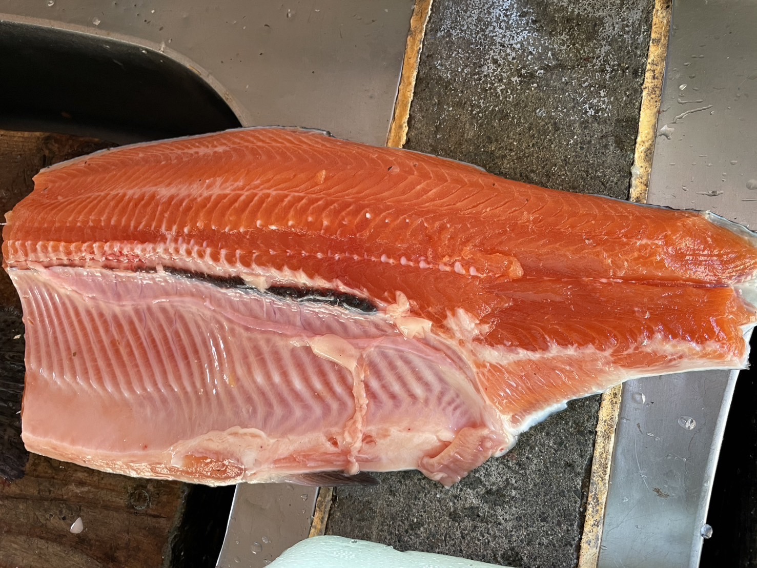 その間に知人が大物ヒット!ネットインした魚は見事なスーモン!捌くと綺麗な赤身でおいしそうでした。