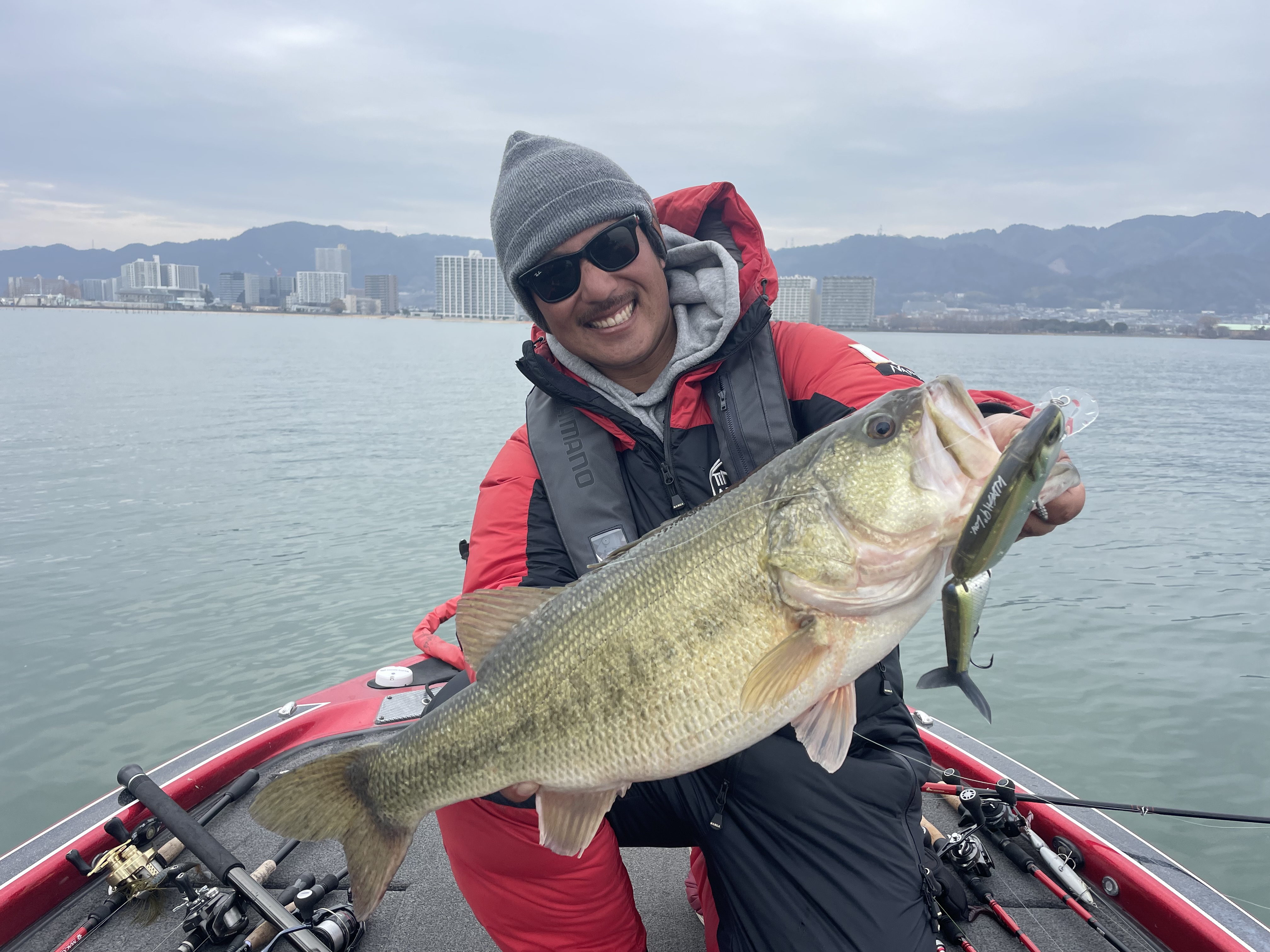 琵琶湖、たまらんばい永野さんのガイドに行ってきました!気温も暖かく最高の釣り日和!スイムジグ、ビッグベイト、ミドストを状況に合わせてローテーションして探っていきます。