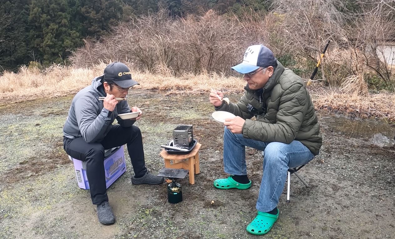 7尾釣れたところで雨も強くなり、さらに一気に冷え込んできたので2時間ほどで納竿としました。釣りの後はアマゴを燻製にして食べようと川原田店長と合流して楽しい時間を過ごしました。