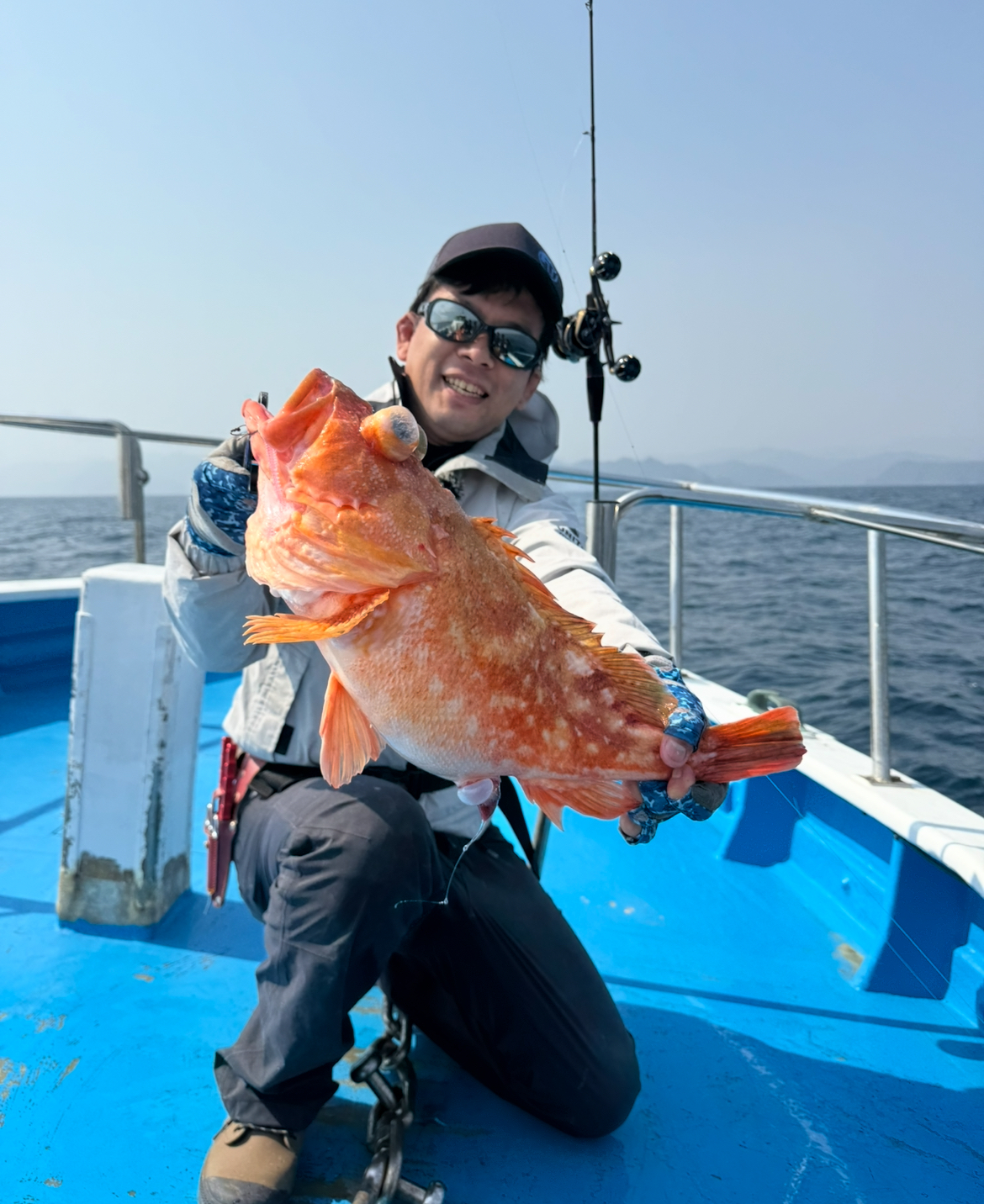 贄浦の海侍丸さんにアマラバ釣果してきました。波が高くうねうねの中スタートしますがなんと、流れ無しの真下に落ちる状態。タイラバ系のドテラの釣りにしては状況は悪い。しかしながらめげずに続け少しラインの角度がつくタイミングで甘鯛ヒット!ロッドはもうすぐ発売予定のFUNTOOL×crazyoceanのタナロアタイラバB63FLEX(フルソリッドタイプ)を使用し、システムはカチッとタイラバユニット+海毛虫カーリーの桜ピンク/UVにて!その後もカラーチェンジしながら攻めていきますがイマイチピンとこず、、最初に当たった海毛虫カーリーの桜ピンク/UVに戻すとすぐヒット。おそらく今日のあたりカラーという事で同船者も同じカラー、ネクタイに変更すると次々ヒット。非常にシビアで難しい釣りだと再認識。船長曰く、ネクタイの形状、配色や差し色等でその日ごとのパターンがあり対応できれば釣果は伸びるが見つけられないと苦戦するとのことを教えてもらいました。なのでタイミングによってはスカートだけ外す、ネクタイも無くす等普段やらないような事も必要になる不思議な釣りでした。非常に興味深く楽しいのでぜひやってみて欲しいです。