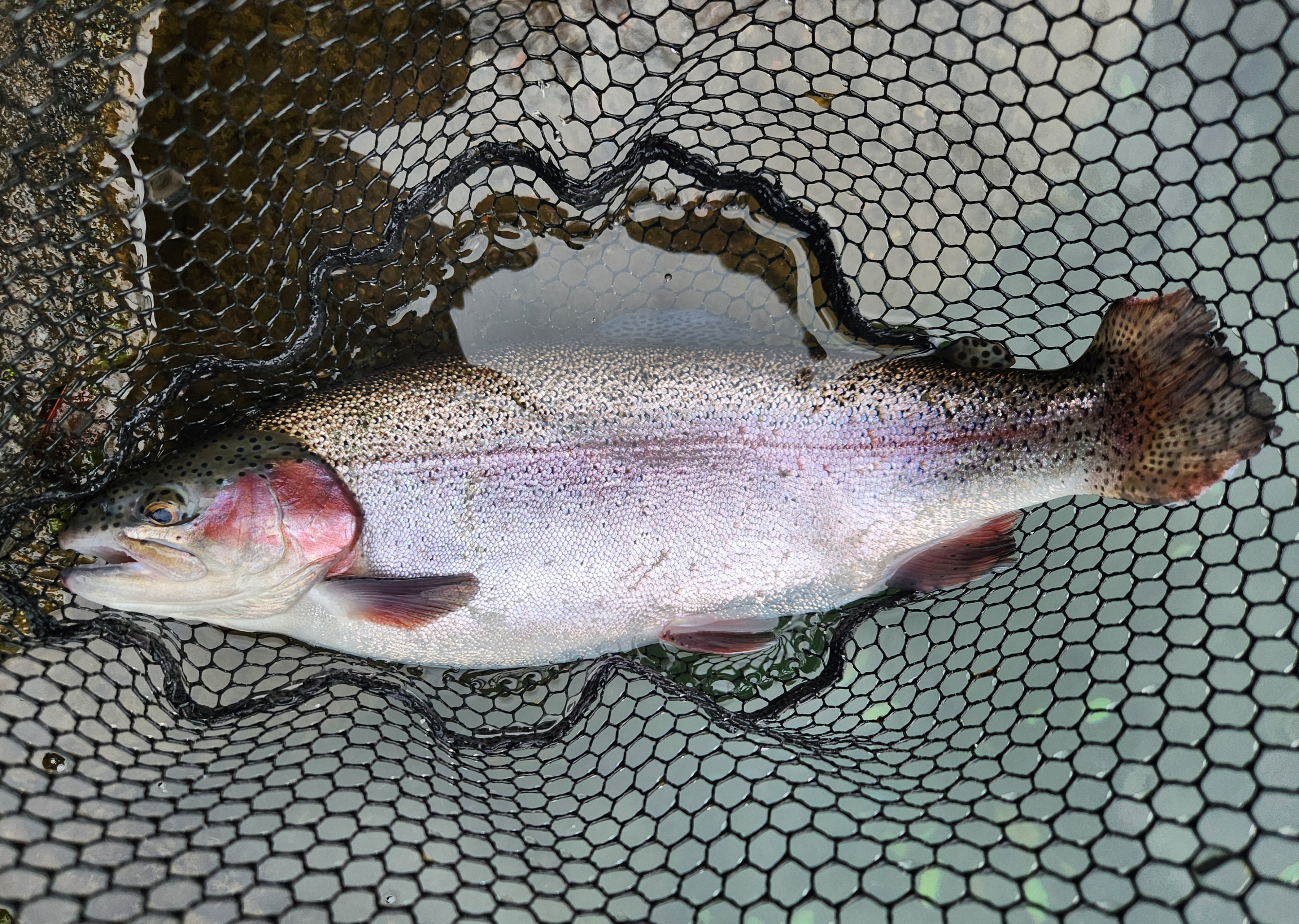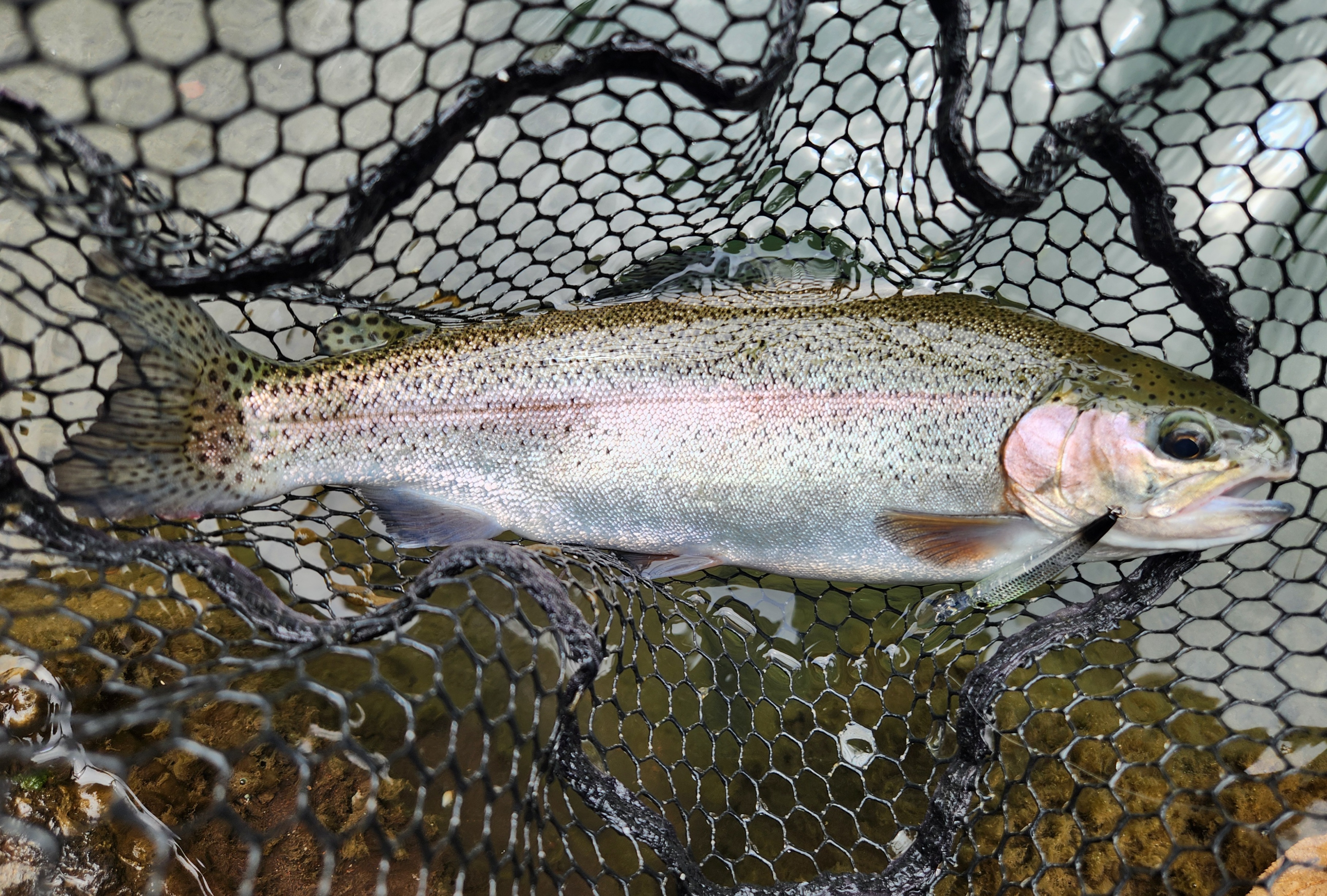 その後放流があり、赤金をメインに放流カラーのローテーションで連発ありさらにニジマスを追加。放流が落ち着いてからは浅場にいる魚を狙ってミノーイング。水がクリアでサイトで反応を見ながらできるのでめっちゃたのしい!ベイトフィネスタックルでルアーはティモンさん「TCレイゲン」でした!