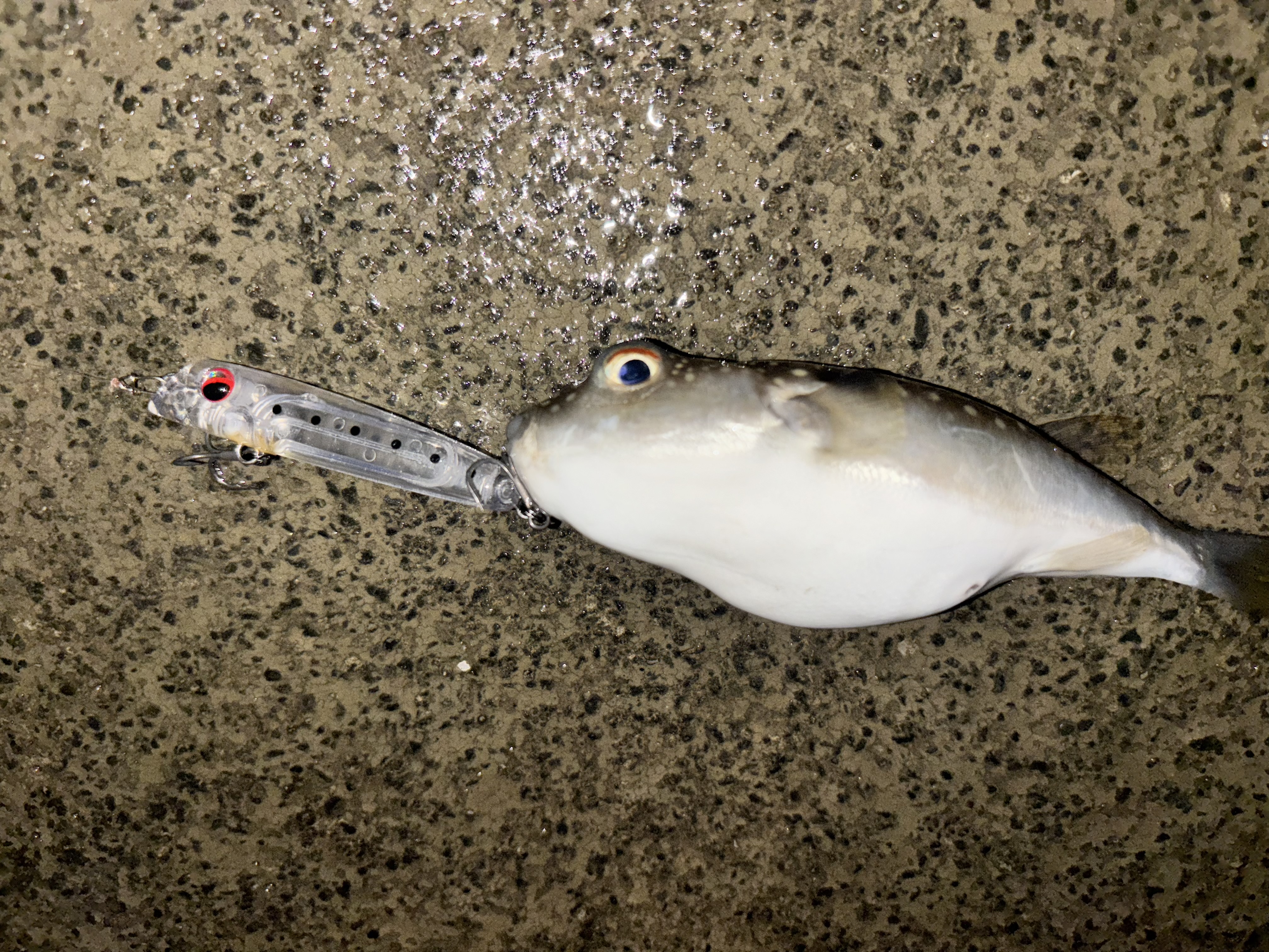 活性が上がってきたのか、短時間で色んな魚と遊べました!シラスのようなベイトが泳いでいましたが、こういうマイクロパターンにはクリア系の小さなスローシンキングミノーがバッチリです!