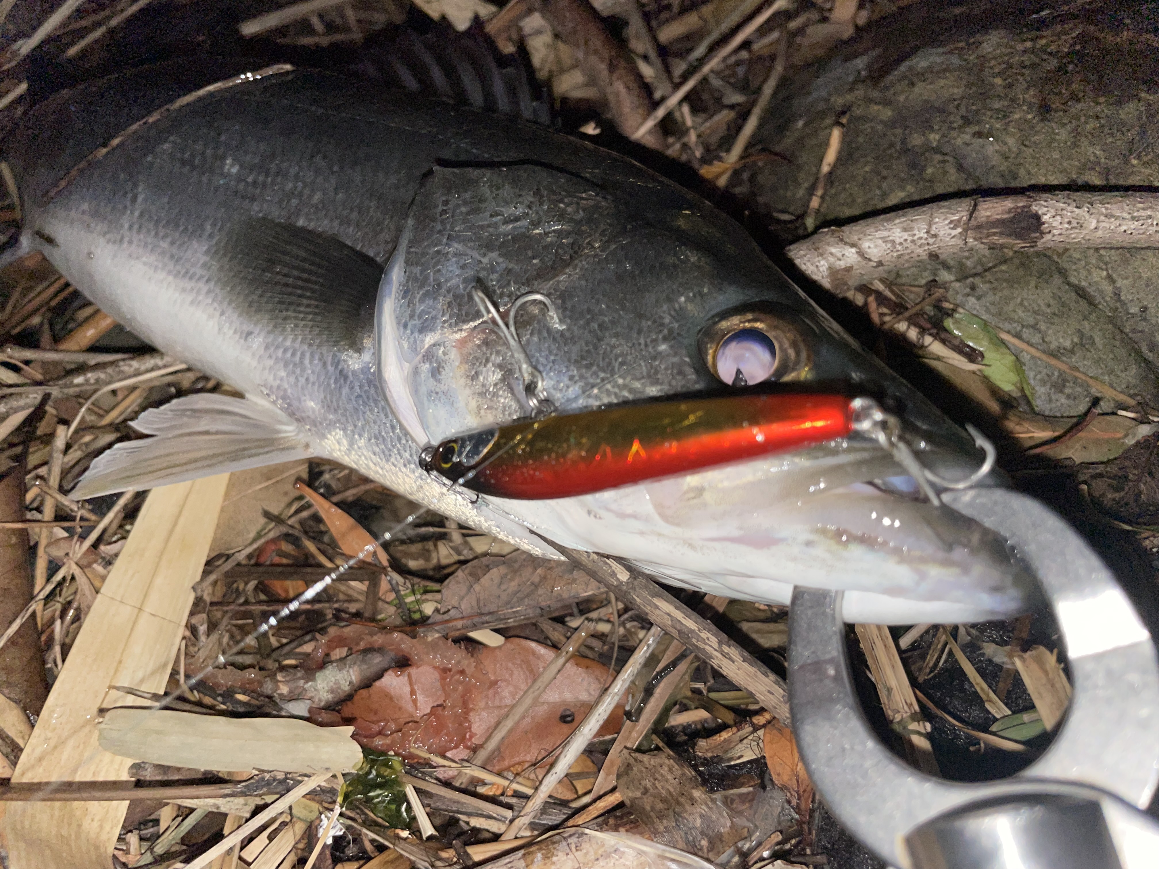 ストップ&ゴーで巻いてくると足元でヒット。50cm程のシーバスでした!まだ釣れるかと思いましたが潮止まりで反応が無くなったので終了!浜名湖もバチ抜けが始まったので数釣りが楽しめそうです!