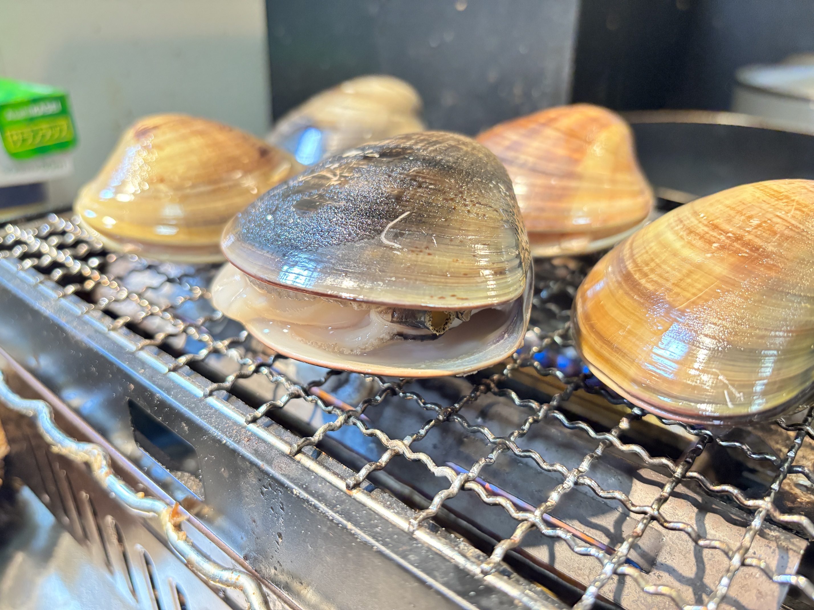 解禁したばかりの東幡豆に潮干狩りに行ってきました。駐車場がいっぱいになるかと思い朝早く出かけましたが余裕がありました。当日は13時干潮でした。10時にオープンし適当な所を掘ってみますがあまり採れません。昼ぐらいまでは本当の潮干狩りをやりましたがあまりにも採れないので昨年も大きいハマグリが採れたポイントに移動。膝上ぐらいまで水に浸かりますが出れば片手が隠れるぐらいの大きさ!4人で夢中で採っていきます。熊手がハマグリに当たるとカツッ!と気持ちのいいアタリが出ます(笑)帰ってきてしっかり砂を吐かし焼きハマグリに!激うまでした。皆さんも是非お出かけください!
