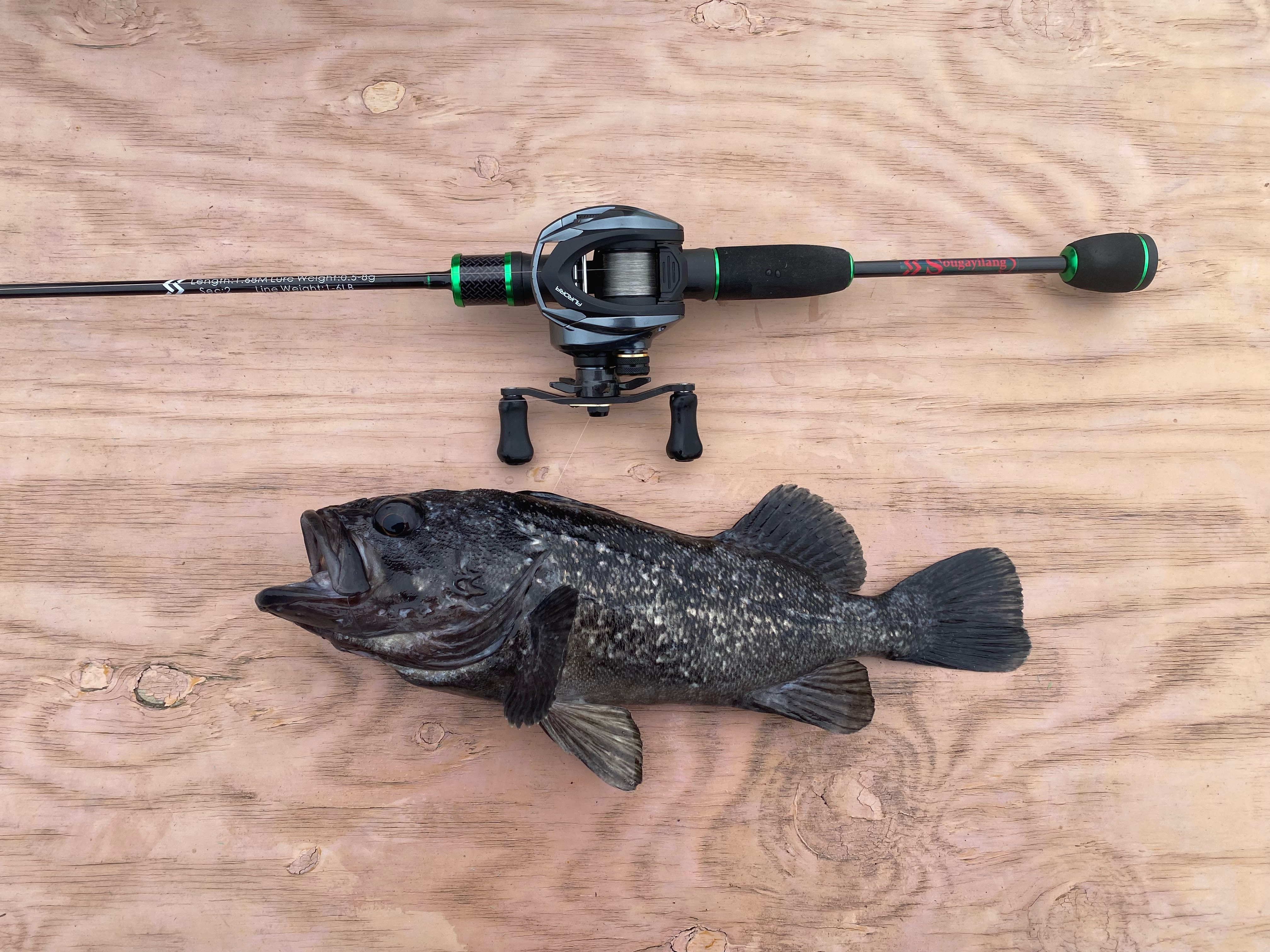 シグヘッドにエビを付けた仕掛をフォール中にアタリがあり、上がって来たのはクロソイ。柱などの障害物付近にサスペンドしているようです。
