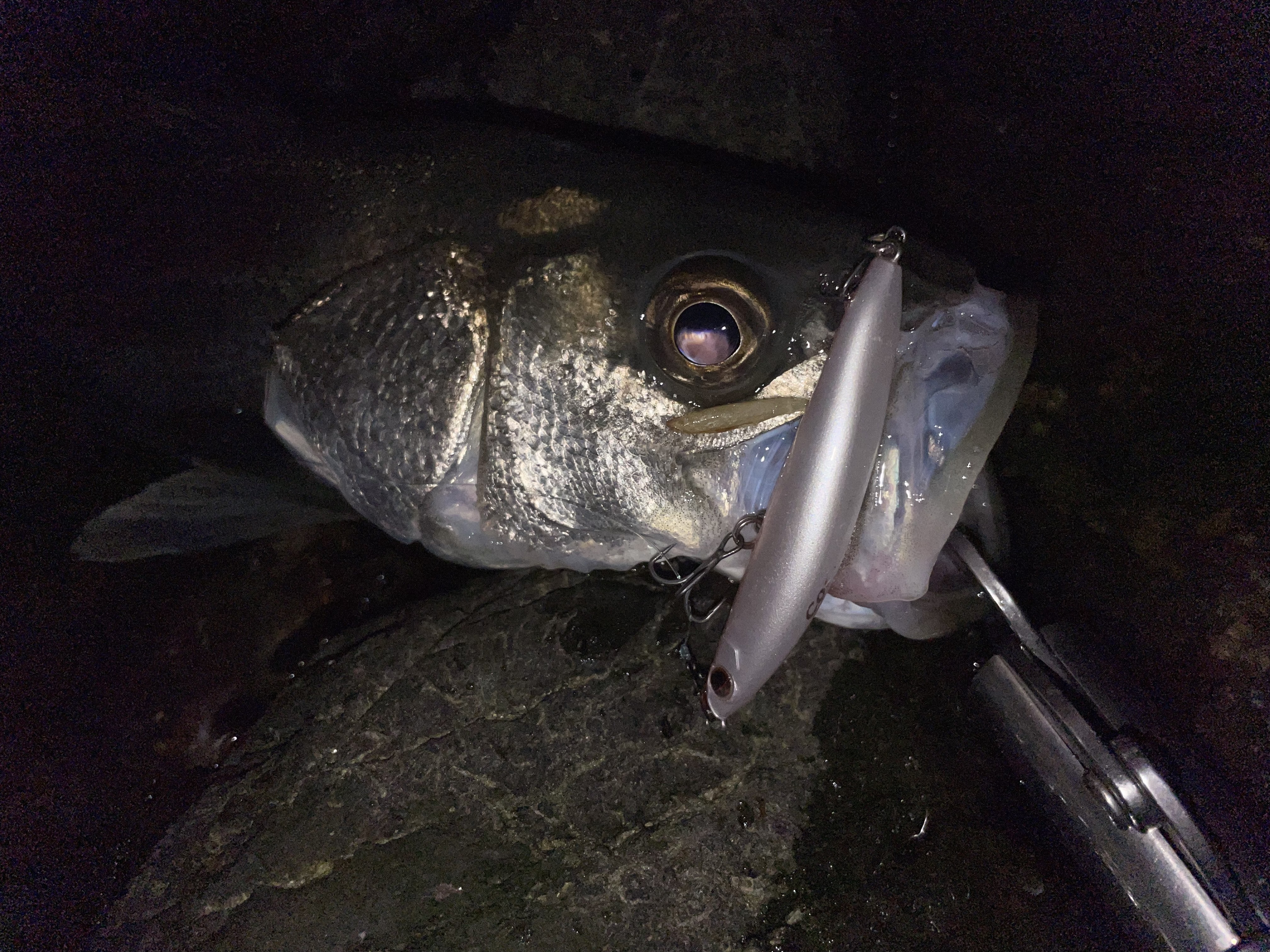 スタートしてすぐに周りがどんどん釣っていくので焦りから頻繁にルアーチェンジ。こう言うの良くないんですよね…でしたが1番最後にヒット。コルセア65で50cm程のシーバス!
