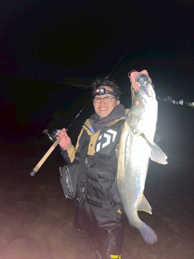 三河店舗のメンバーで浜名湖に行ってきました!最近は1人で釣行していたので楽しみです。仕事終わりの22時ごろポイントイン。先に入っていた平島くんはキビレを釣っておりアタリも多いとの事。