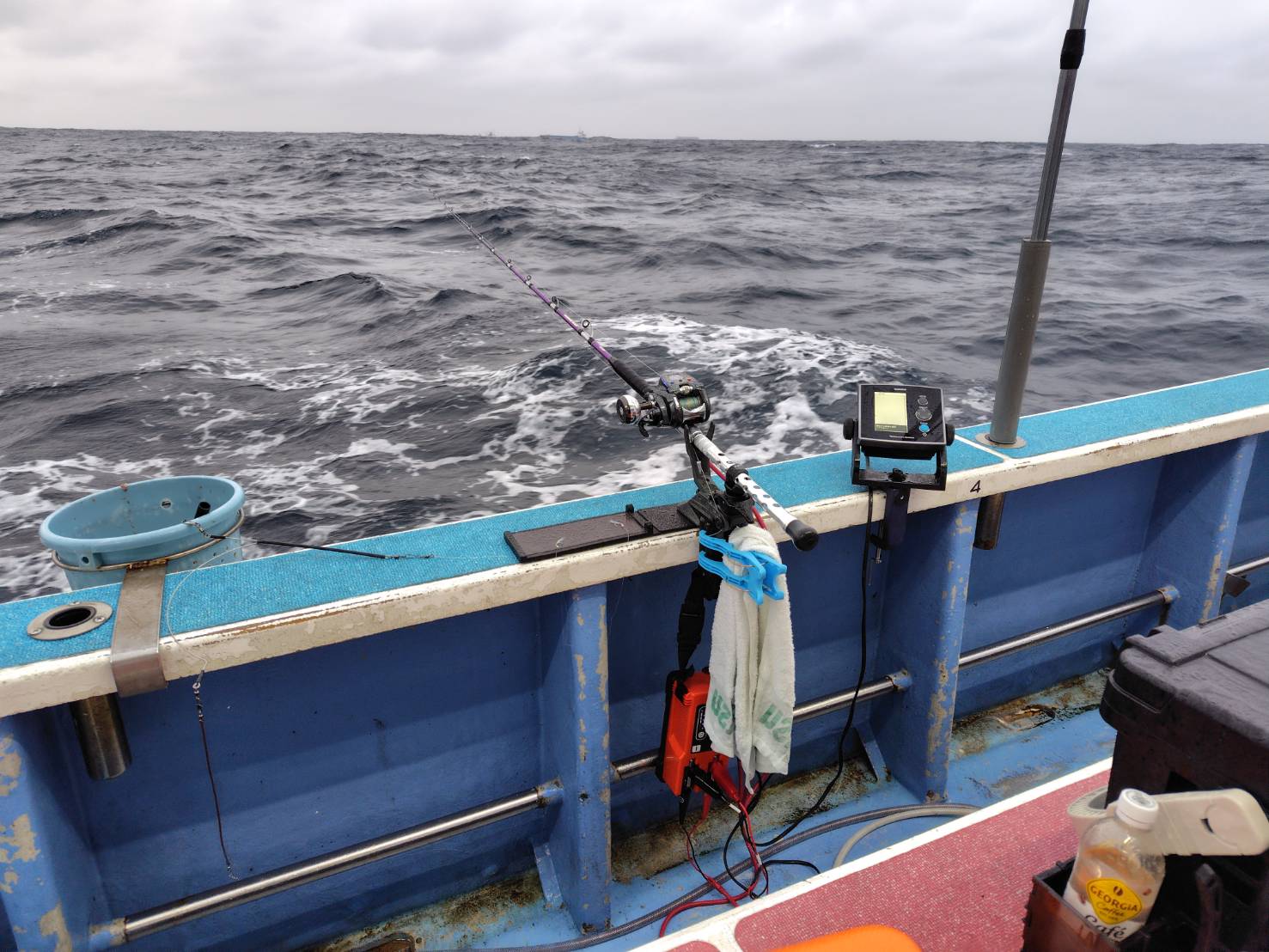 鳥羽国崎の功成丸さんに大アジ釣りに行って来ました!当日は天候に恵まれず、雨と風とウネリのトリプルパンチ(^_^;)しかもオモリ120号でもぶっ飛びの潮でした。潮が緩むと喰いが悪くなるとの船長のアドバイスもあり、ひたすら手返し(^_^;)船長の指示通り底から5mあたりを重点的に狙いますが…。結果はアジ一匹で終了(^_^;)潮下の釣座ではいい型のアジを10匹以上の釣果も出ていました!今思うと反省点も多いですが次回の課題としたいと思います!このままでは終われません(^^)