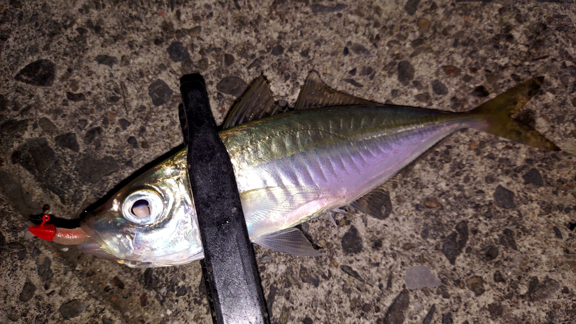 南伊勢にアジング調査に行って来ました!ポイントに到着する頃は干潮時合で月も出ていました。いつもだと釣れないパターンの状況だったのでとりあえず1匹でも釣れたら良いな~くらいでポイントへ。今回は『ヤリエのアジメバライダー』というジグヘッドを試したかったので、最初から0.7gにチビキャロスワンプをセッティングしてやり通しました。まずはカウント5でゆっくりアクションさせ誘ってみましたが反応無し・・・。やっぱりダメか~と思いながらも少し歩いてみると、その場所ではすぐに反応が出ました。カウント5でアクション後フォールさせるとヒット!やったーおった!しかもちょいとマシなサイズの19cm。そこから1投1匹ペース?がスタートでした(笑)フォールさせてゆっくり誘うと時間がかかるので、巻きながらアクションを混ぜて誘うと効率が良かったです。反応が渋くなったら歩いて別の場所をやってから入りなおすとまた釣れました。アジメバライダーのジグヘッドも凄く良いです。大体上アゴフッキングでヘッドが少し出るくらいの丁度良い食われ位置でした。しかもバレにくかったです。0時頃、後ろ髪を引かれながら納竿しました。終わってみれば2時間ほどで31匹の釣果。久しぶりに楽しいアジングとなりました。ヤエンのエサに丁度良さそうな大きさなので時間があれば、活かしておいてヤエンもやってみたかったです。