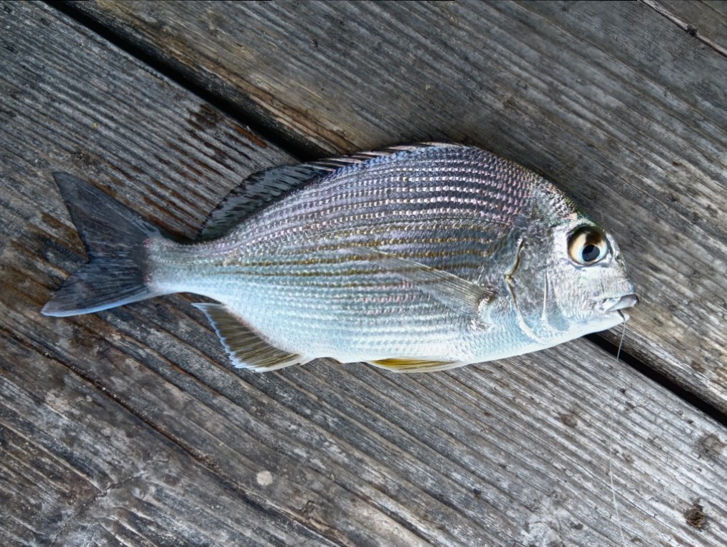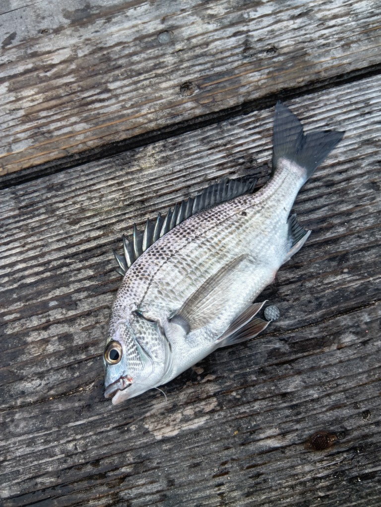 三重県鳥羽市にある海香さんの筏にいってきました。まずはボイルオキアミ(ボイルオキアミは画像のように水を吸わせておきます。そのままだと水に浮いて鳥のエサになります)をパラパラと撒いて様子を見ます。アジなどの小魚の様子は見えず・・・。ボイルオキアミをつけて落とし込んでいきます。あたりがあるものの糸の痛みからフグにつつかれているので、団子を準備。おけにあかまるとオキアミ3キロをまぜ、団子で投入開始。団子が底について割れた瞬間にあたりが。釣れたのは手のひらくらいのチヌ。ここから同じことをしながら3枚追加。中層はどうなっているか気になったのでまた上から団子なしで落とし込んでいくもやはりフグ。あきらめて底狙いに絞りヘダイを追加した。途中、予想外のことが起きてからあたりも何もなく、餌も取られず沈黙、納竿となりました。エサ取り対策でカニなどの固めの餌も持ってい行ってもいいかなと思いました。乗っ込みシーズンいいサイズが釣れているのでいってみてはいかがでしょうか。