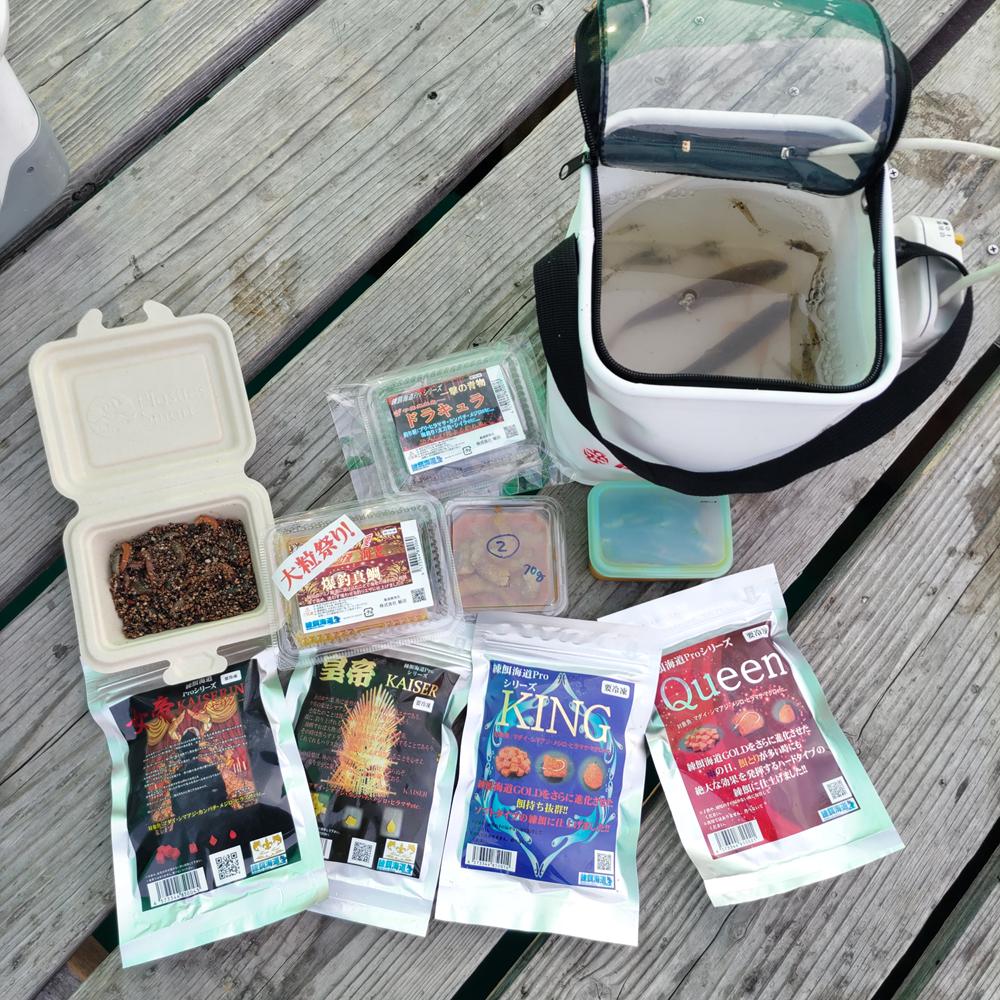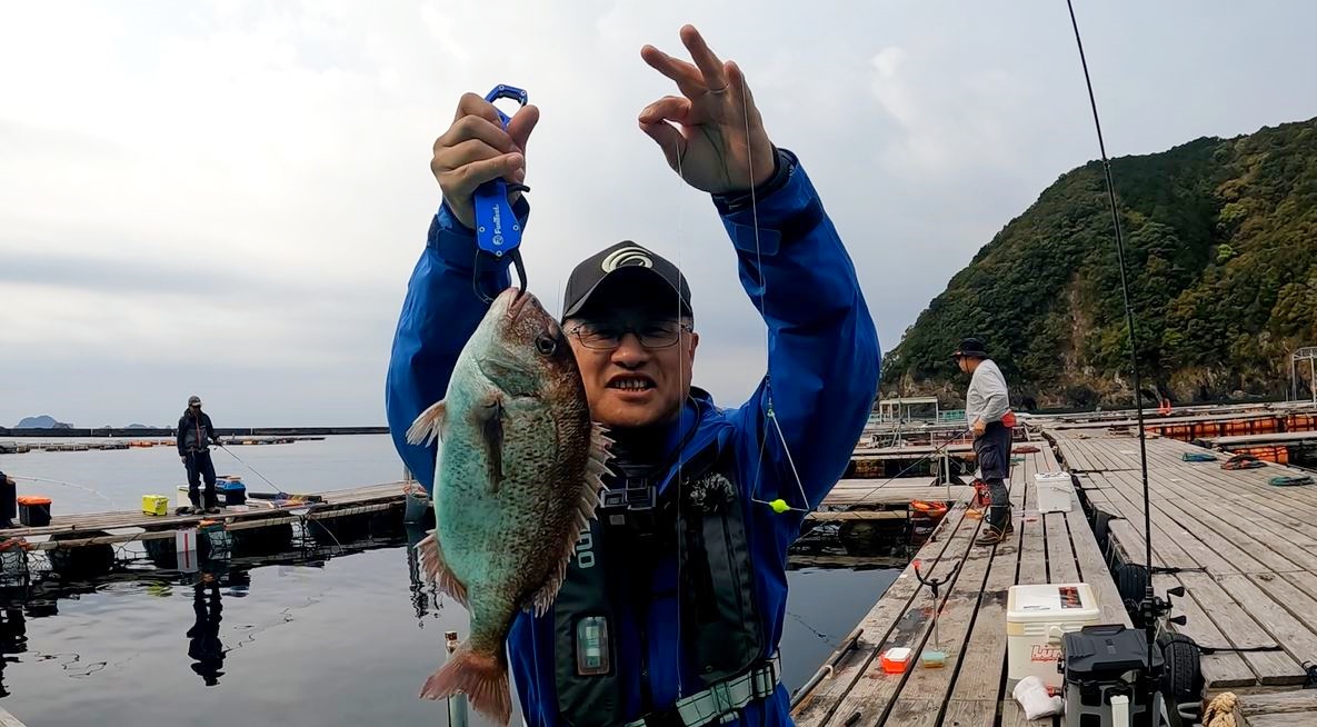 朝から真鯛の連続ヒットでメンバーは盛り上がりさらに青物もダンゴに反応するという高活性の状態でした。圧巻だったのは見えているシマアジを1人で7尾釣るという見事なサイトフィッシングを展開した佐藤チーフでした。私は撮影メインだったのでこの時間帯はあちらこちらに走り回っていました。魚が少し落ち着いて時間帯にはトライアングルシンカーと脈釣りトライアングル仕掛けがボトム狙いで大活躍!と満足度の高い釣行となりました。