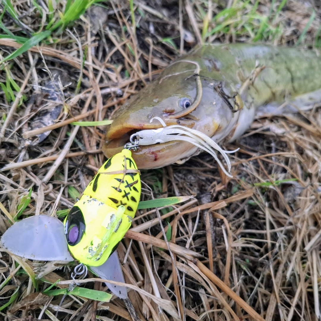 結果としては2本キャッチでしたが、バイトは沢山あったのでテンション上がりました!久しぶりにアグレッシブなナマズ釣りができたように思います🔥今回のミスバイト連発の原因を考えたのですが、おそらくルアーの問題かなという結論です。しかし、ルアー自体が悪いとかセッティングが悪いとかではなくルアーセレクトの問題。今日に関してはアピール力が足りなかったんじゃないかなと思います。水は激濁り、水面もバシャバシャだったのでナチュラルアクションなナジーバグベイビーでは、アピール力が足りなかったと思います。改善案としてはでんぐりガエルナマズSPやポンパドール鯰カスタムなどのノイジー系で狙うと釣果を伸ばせそうです!