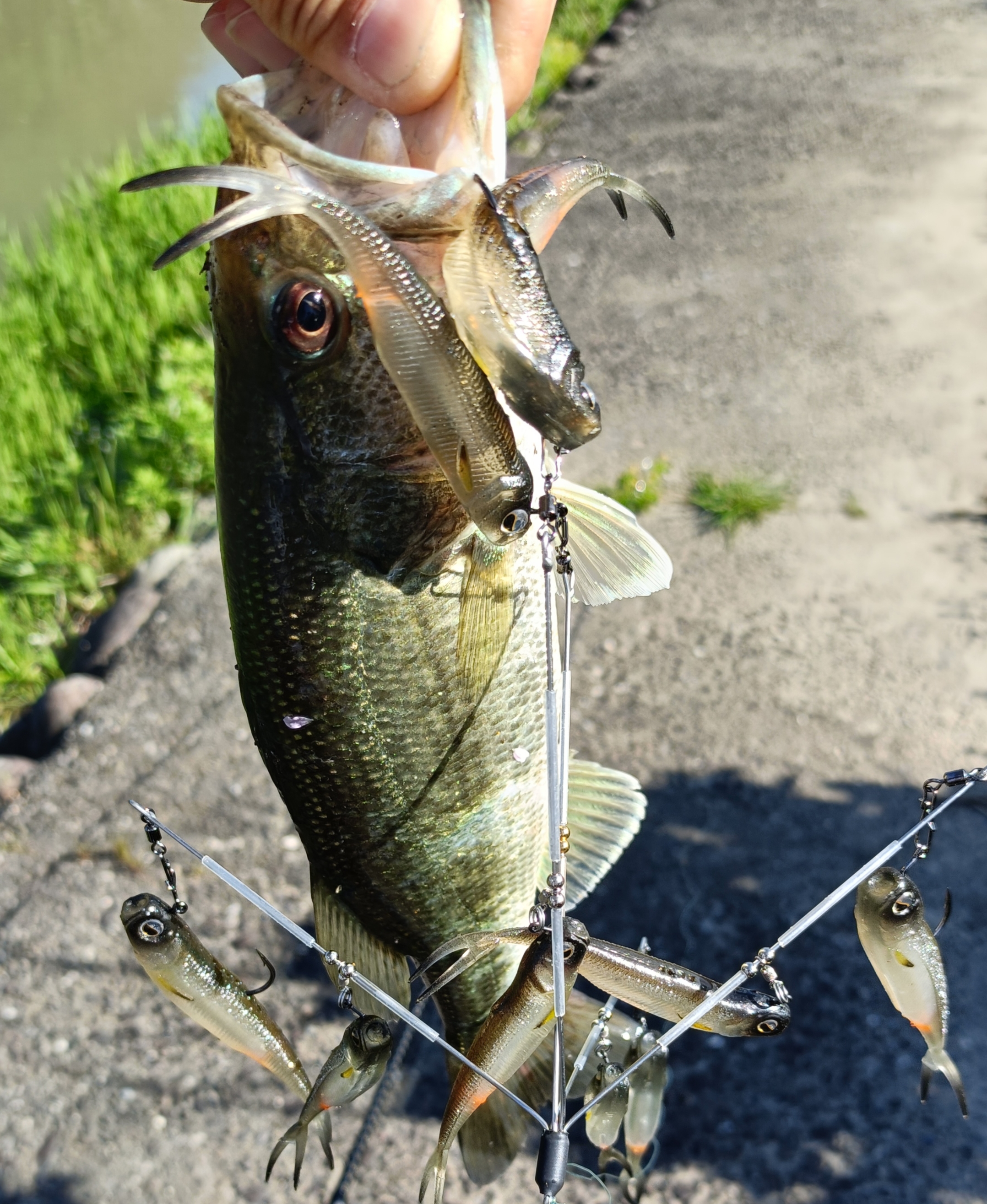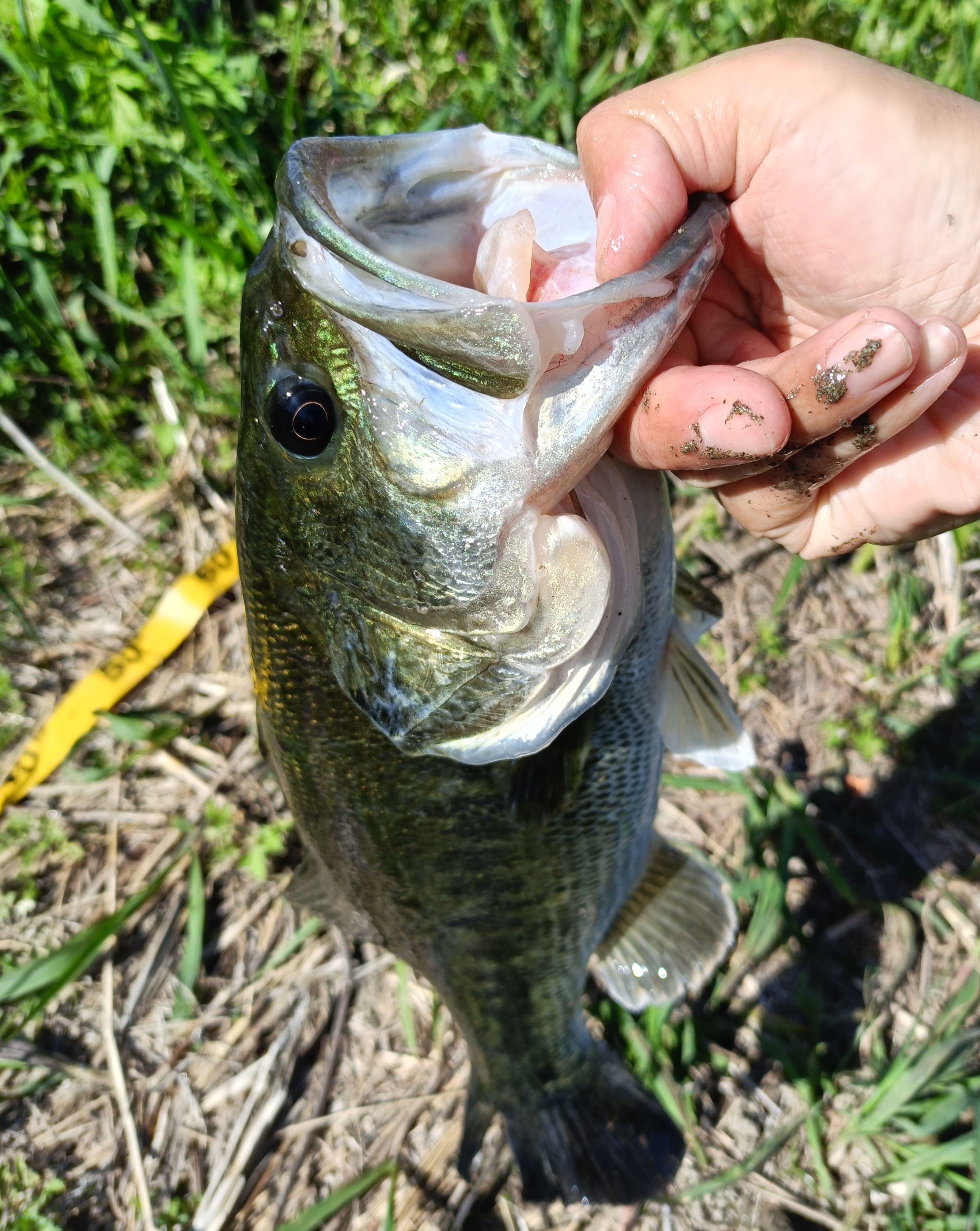 三重県河川へバスフィッシング!バマストで釣ろうと…岸際をネチネチと狙います!時折反応はありますが見切られる(*_*)デカイやつも口元まで来ますが…。見えバス発見でやっと食わすも抜き上げ時に針外れ…。また見えバス発見で…お助けフリーリグで何とか1匹GET(。•̀ᴗ-)✧そして移動して…バマストで極小サイズをGET(≧▽≦)かなり反応しますが見切らが多いです。バマストセッティングは、Sギミックにフィッシュローラー3in、4inです(*´ω`*)