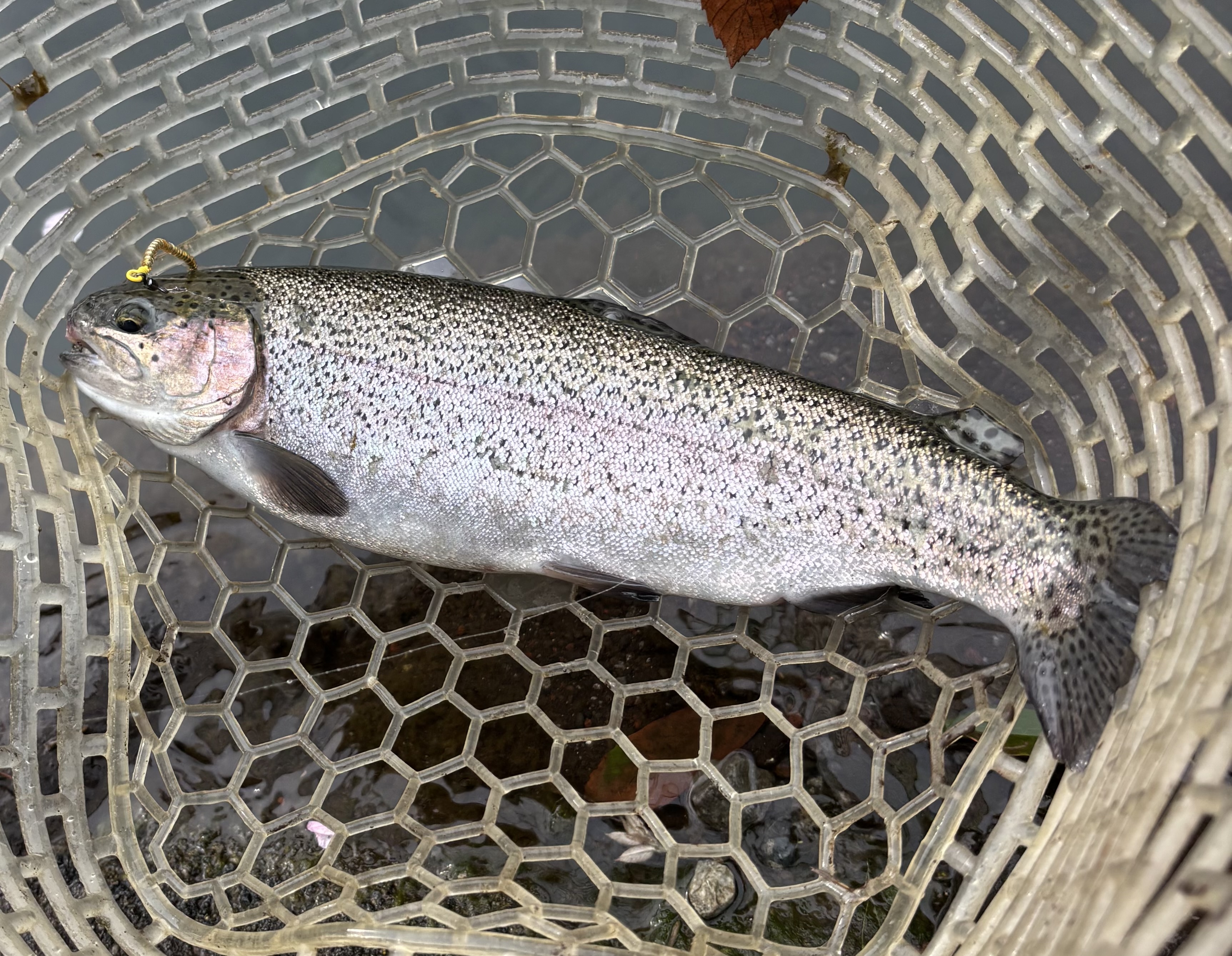 最初の数投はなかなか釣れず、少し焦りましたが、根気よく続けていると、ついに当たりが!引き上げると、トラウトが釣れました。嬉しい気持ちでいっぱいになりました。その後も順調に釣果を重ね、気がつけば数匹の魚を釣り上げていました。