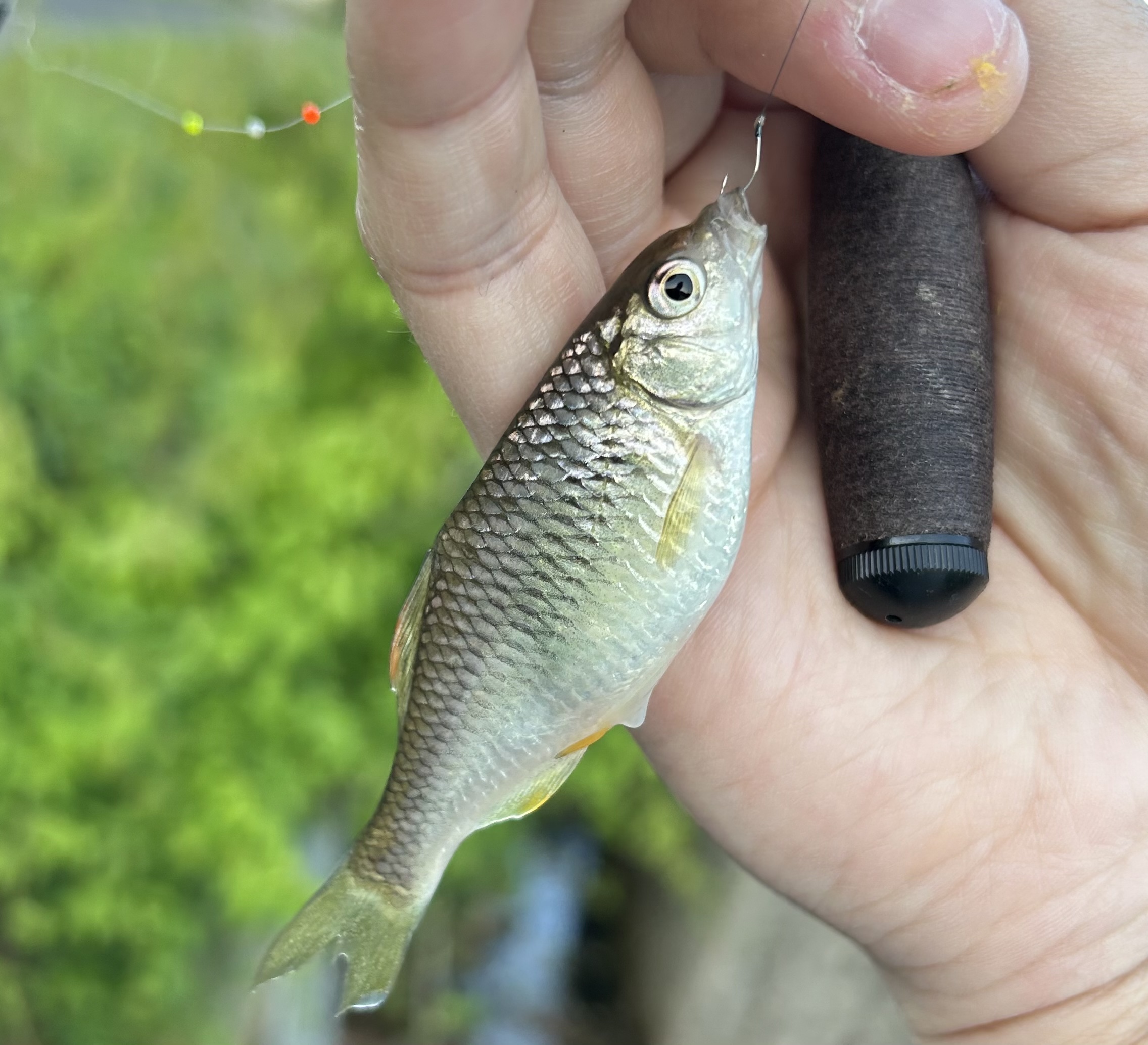 どこにだよってタナゴ釣りにです。