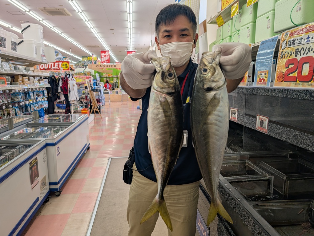 こんにちは~焼津街道店の三浦です。4月28日に焼津港の風神丸さんの大アジ釣りに行ってきました。船長の話では夜の時間に釣れるアジは型が揃っているということで、19時集合し、19時30分頃に出発しました。ポイントまでは30分程、水深は30メートル前後のポイント開始。船中では開始直後からアタリはあるも本命の大アジではなく、ニベや黒鯛中心。しばらくすると本命の大アジがポツポツ釣れ始めます。釣れるアジは船長の言ったとおり、ほとんどが40㎝を超える大アジ。しばらくすると私にも45㎝の大アジが釣れました。その後もポツポツ釣れ、最終釣果は40㎝以上が13匹、40㎝以下が3匹で16匹の釣果でした。船酔いで置き竿中心でまともに釣りができなかった為、釣果が伸び悩みましたが、手持ちでしっかりと棚をコントロールできればかなりの釣果が出せたと思います。次回は万全の体調でリベンジしたいと思います。