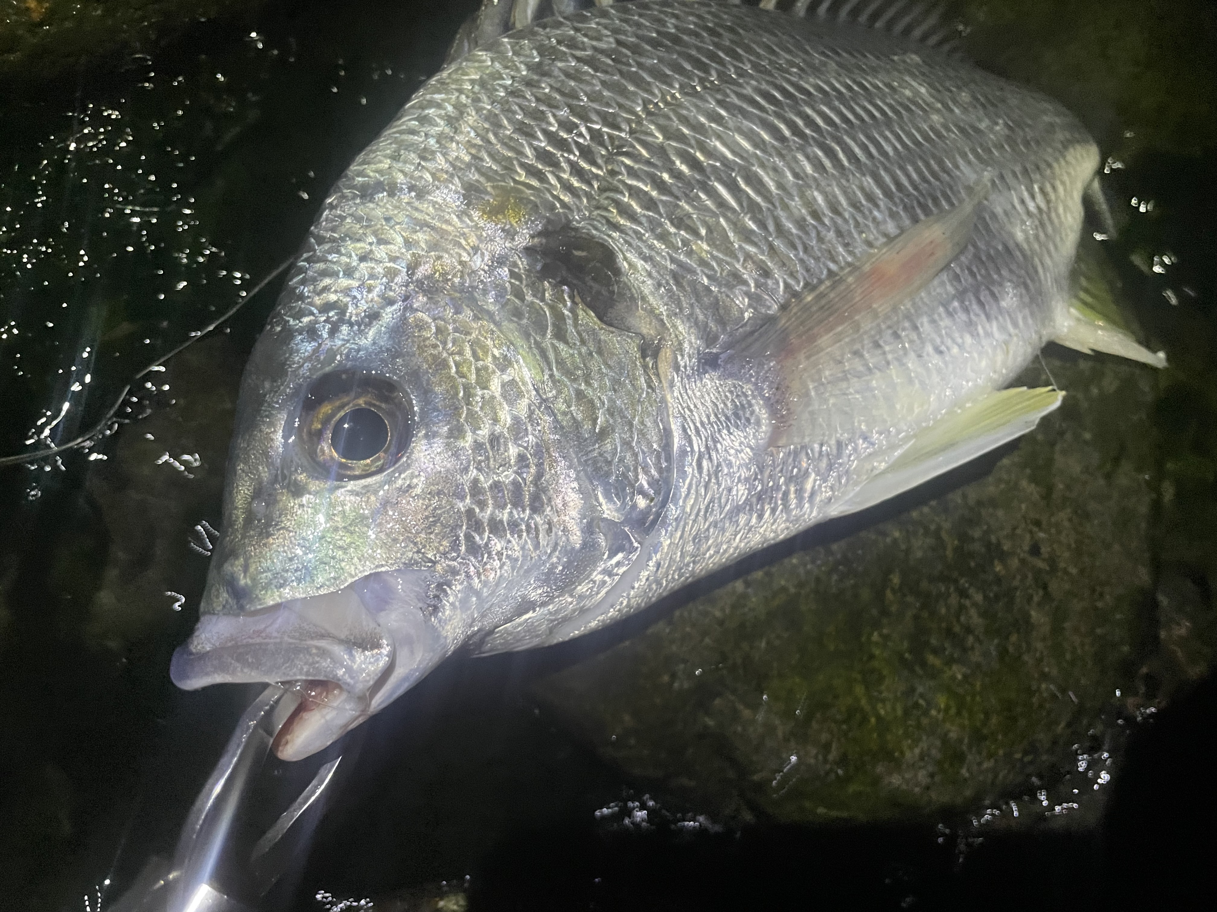 まさかの1投目でヒット!50cm程のシーバス。時合が来たか!?と思いすぐにリリース。2投目もヒット!今度は黒鯛!さらに3投目もヒット!今度はキビレ!3投で3種類の魚が釣れちゃいました。こういうのがあるから浜名湖は面白いですねー