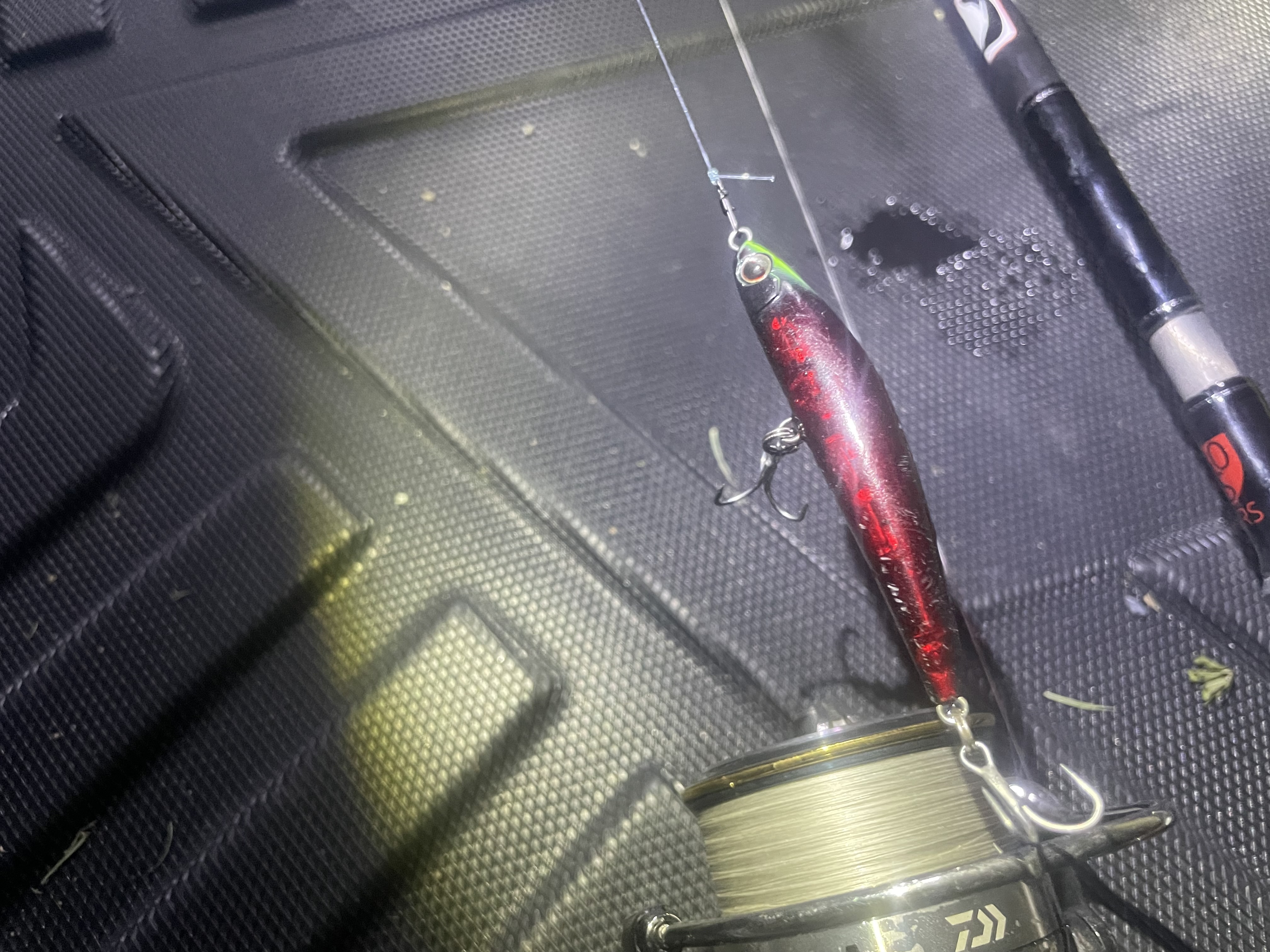 2時間ほど色んなルアーを投げ倒して全くのノーバイト。そろそろ帰ろうかな…と思い最後にコルセア65のアサイーをチョイス。実はこのカラーで一度も釣った事ありません。