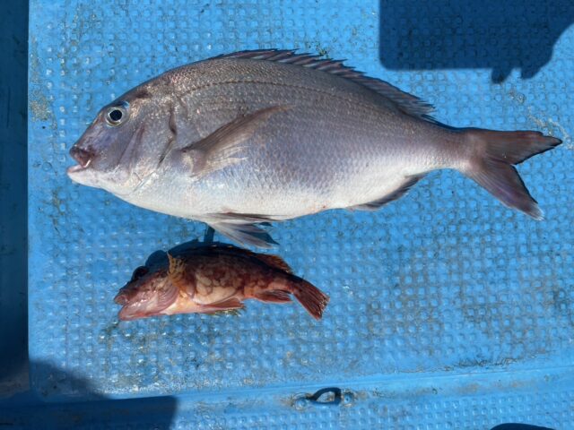 狙い通りヒット!新商品オーシャンフレイルタイラバをぶち曲げて上がって来たのは本命マダイ!これだけ曲がってくれるとバラしにくくて良いですね!
