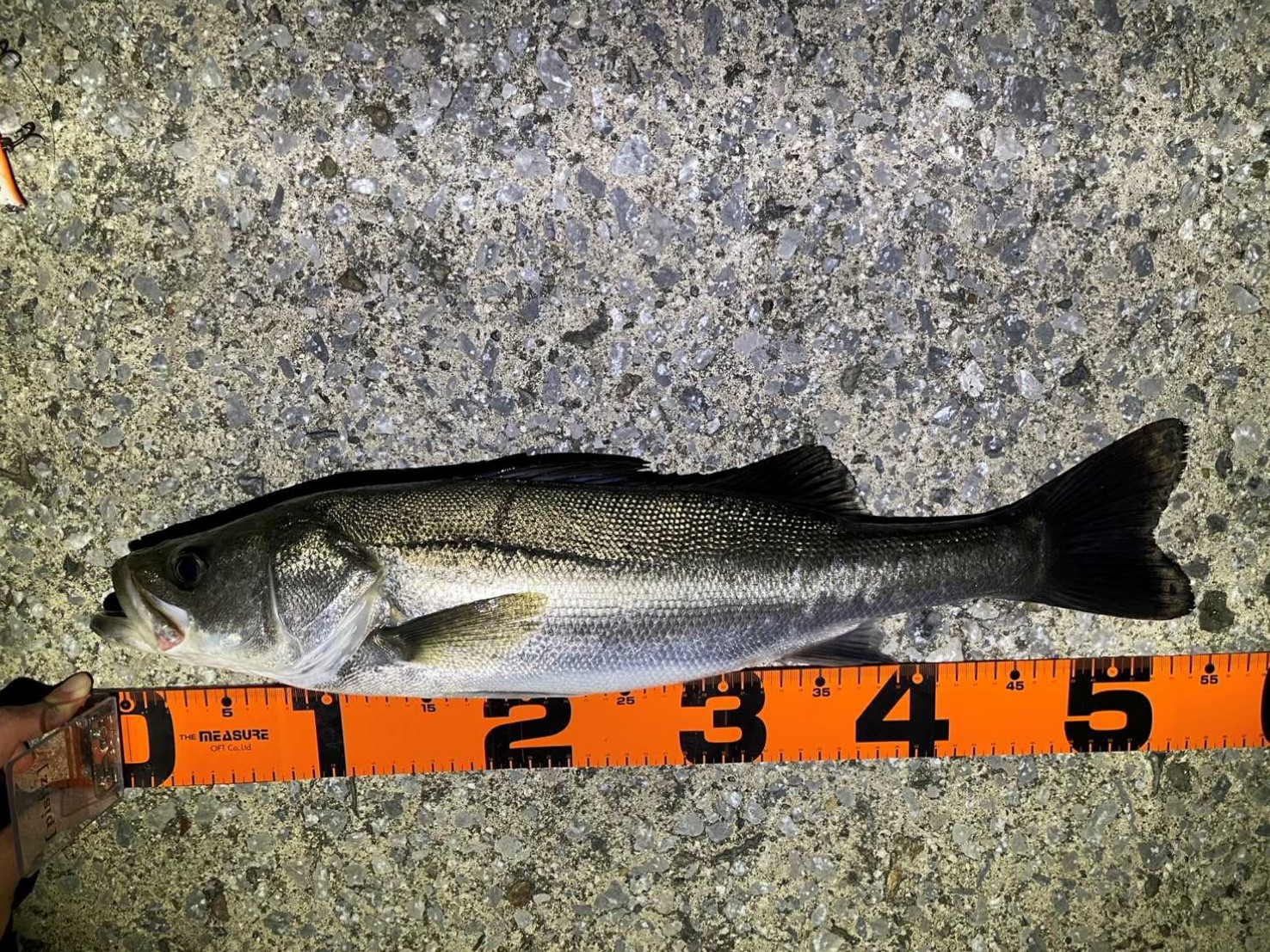 慎重にやり取りをして上がって来たのは55㎝ほどのシーバス!