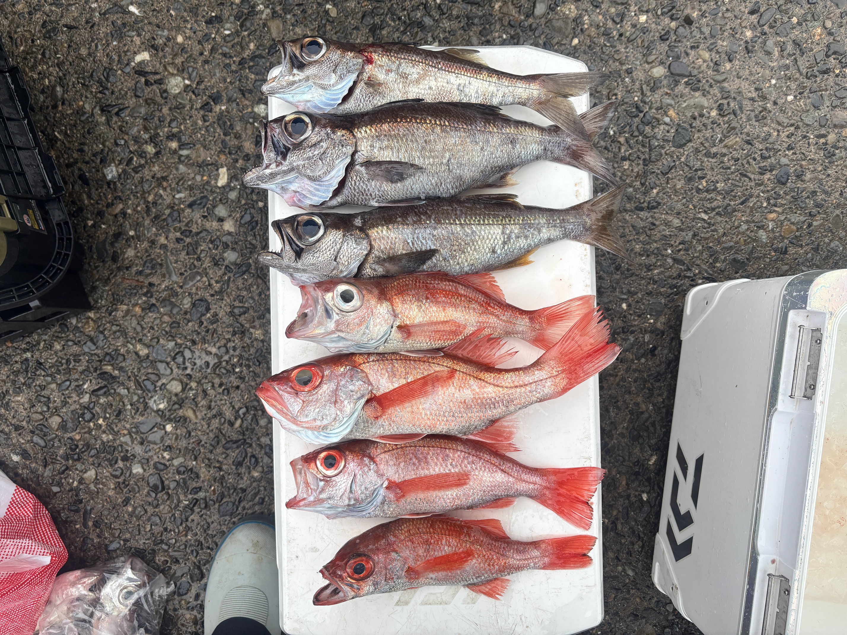 焼津港から1時間強の船旅を経て、まずは釣れれば大きいという型狙いの石花海で釣り開始。水深180~260mを探り、サメに邪魔されつつ3時間弱がんばりましたがポイントを大きく移動します。こちらでは魚が変わり、クロムツ、シロムツ、ユメカサゴが時折当たって来ますが、本命は姿を見せてくれず、船中で本命アカムツ4尾で納竿となりました。風神丸のご親切な船長さんが最後までポイント探って移動を繰り返して下さり、何かが掛かればみんなドキドキワクワクと終始楽しい船中となりました。またチャレンジします(^^)/