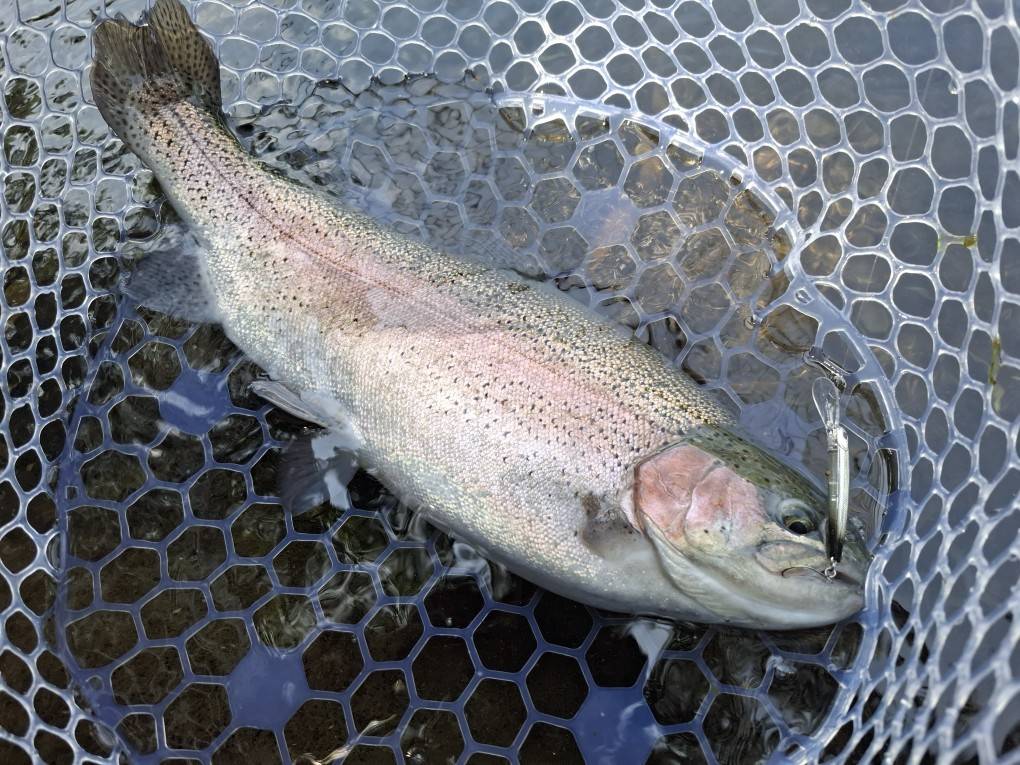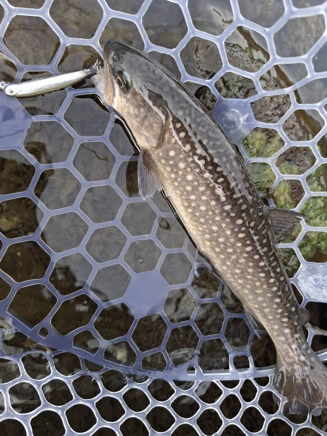 開始早々は何を投げても反応が悪く苦戦しました。放流直後に得意のミノーイングで何本か釣れましたが、あとが続かず…